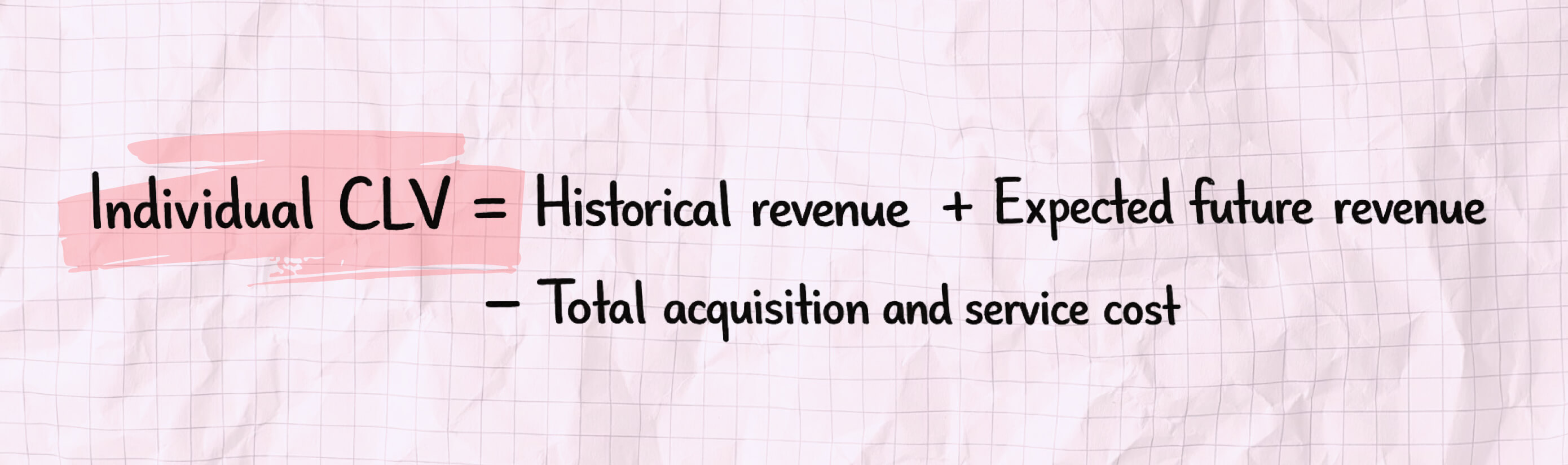 Individual CLV uses a different structure because it reflects what a specific customer has already paid and what they are likely to pay going forward.