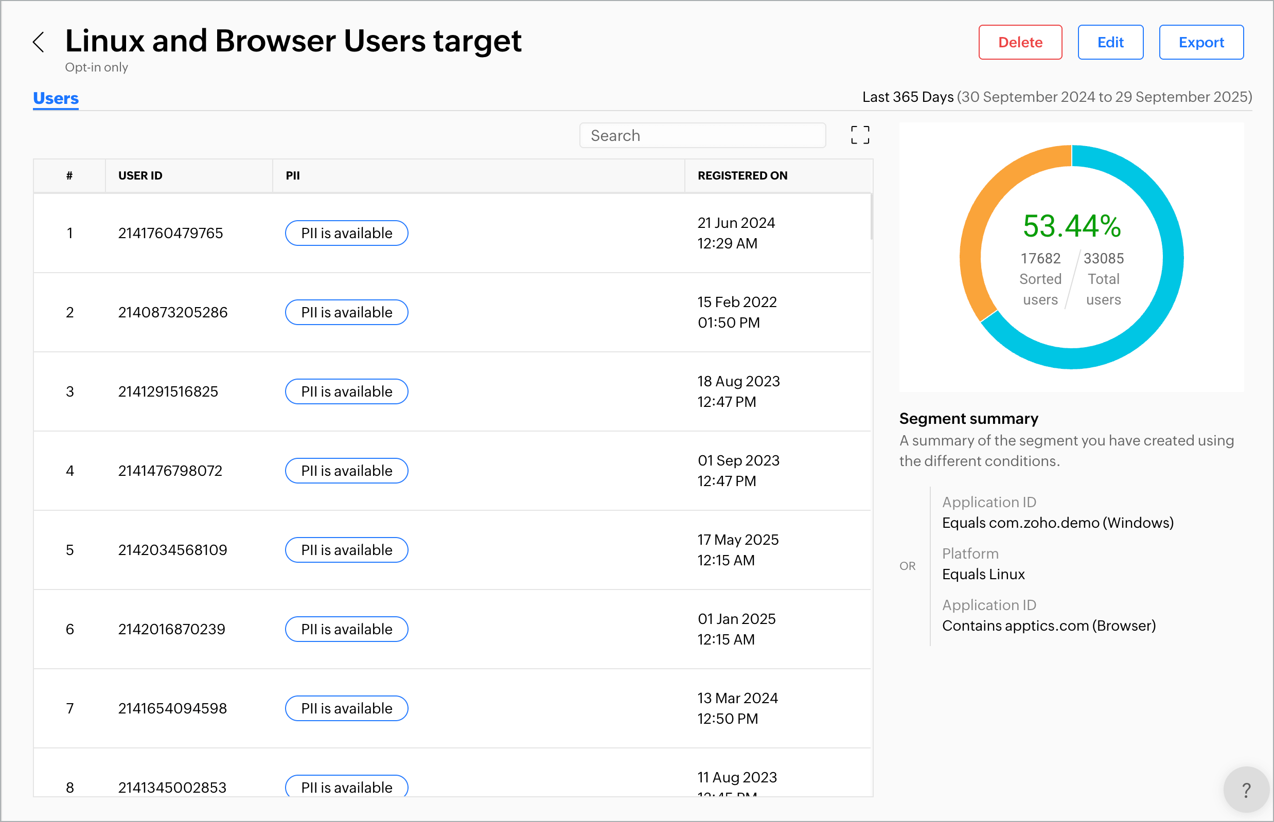 - Part of a bigger ecosystem: You can take a segment created in Apptics and immediately use it to send targeted push notifications or power campaigns in Zoho Marketing Automation.
