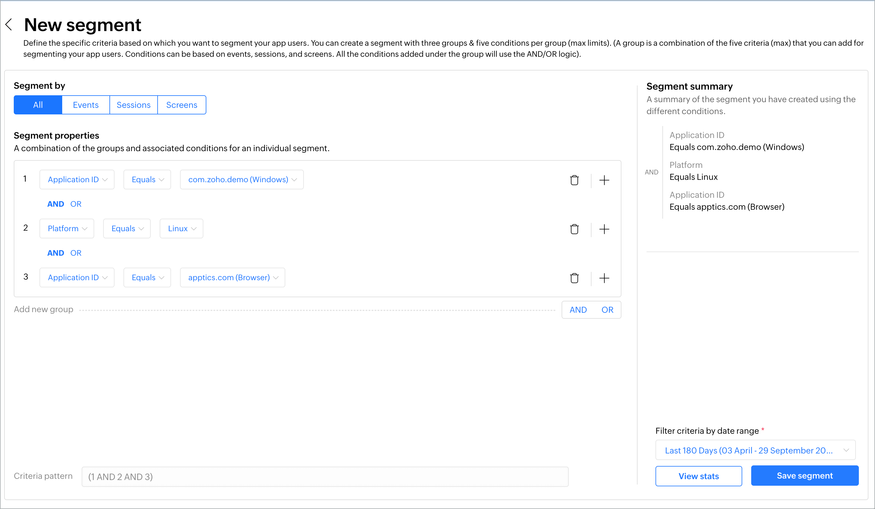 When you create a segment, you're essentially giving Apptics a simple command: "Show me only this part of my audience based on the rules I set."