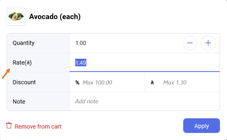 في POS App، اختر Item الذي تمت إضافته إلى السلة.