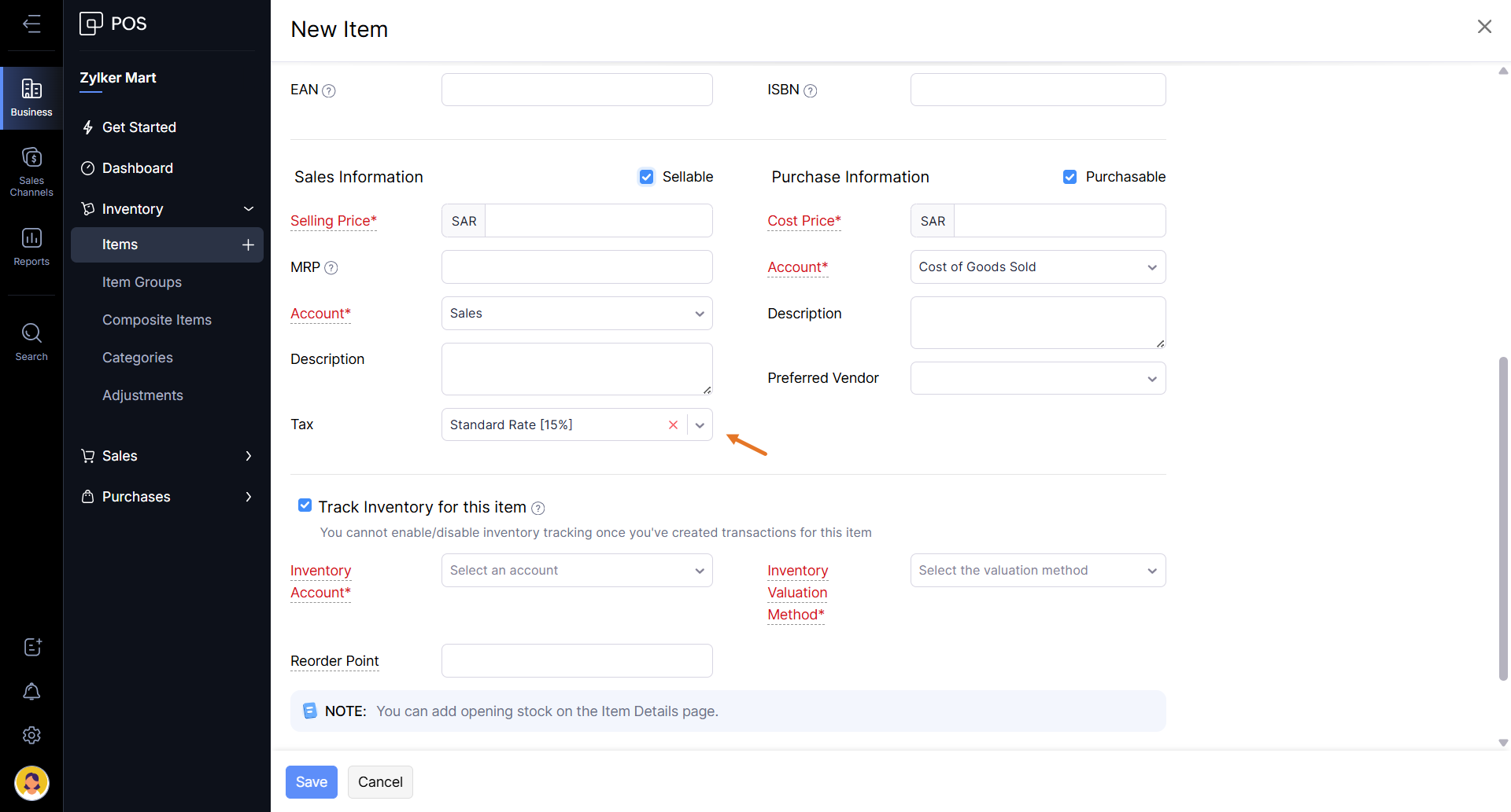 من أجل الوفاء بهذه المسؤوليات وتجنب العقوبات والغرامات والإجراءات التنفيذية الأخرى من هيئة الزكاة والضرائب والجمارك (ZATCA)، يجب عليك ضبط إعدادات الضريبة في Zoho POS. لا يمكنك تطبيق معدلات الضريبة على معاملاتك حتى تقوم بإعداد إعدادات الضريبة الخاصة بك.