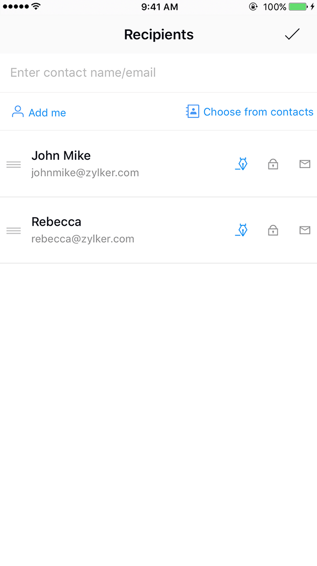 قم بتنزيل تطبيقاتنا الأصلية للأجهزة التي تعمل بنظام التشغيل Android أو iOS لتوقيع المستندات أثناء التنقل أو لإرسال المستندات لجمع التواقيع. يمكنك أيضًا الوصول إلى Zoho Sign من متصفح جهازك المحمول.
