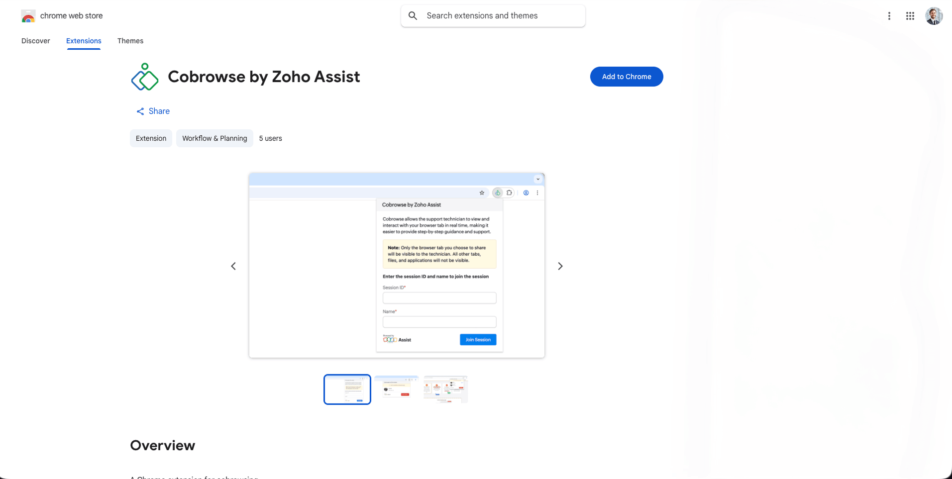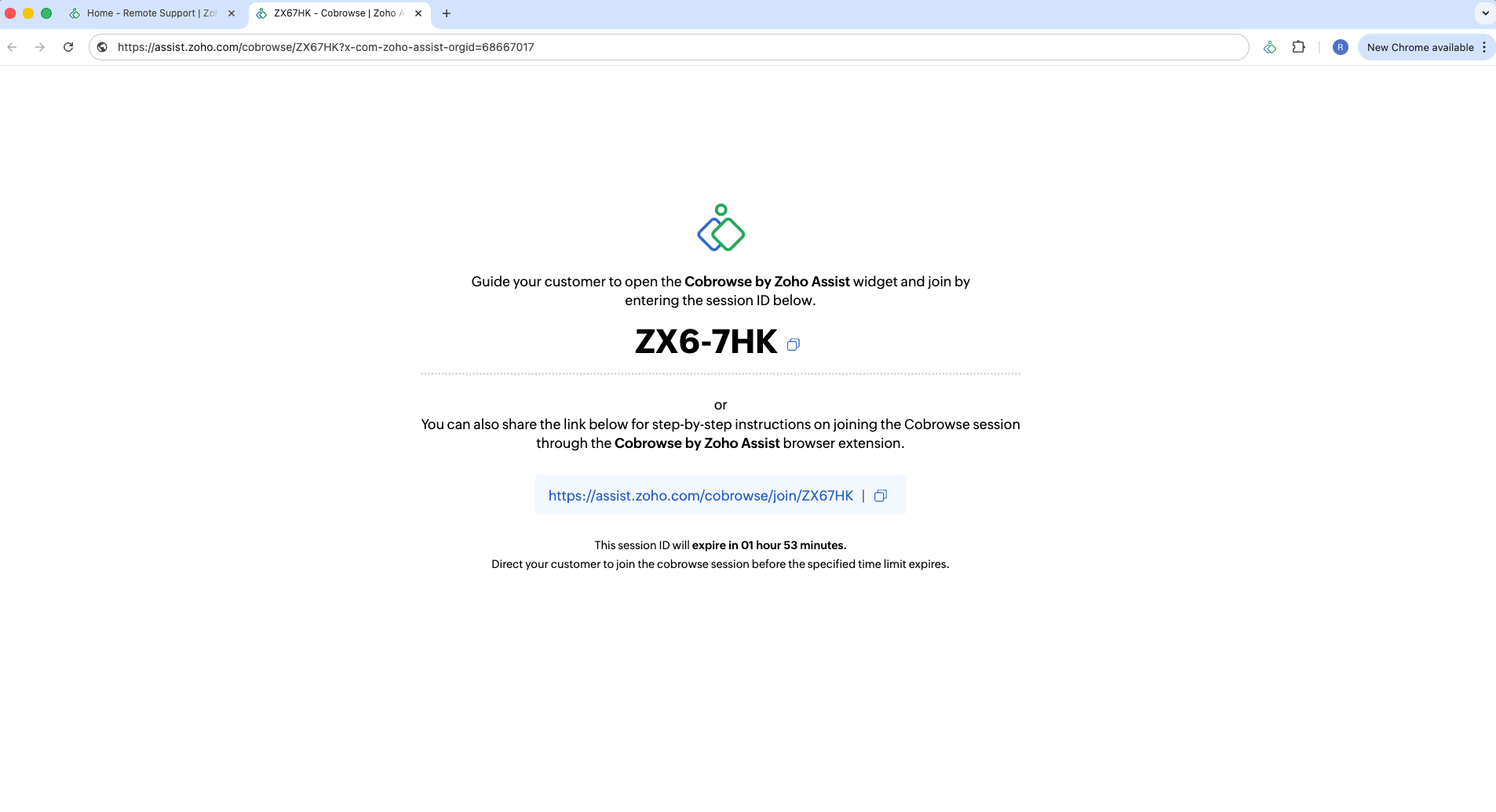 Ask the customer to install the Cobrowse by Zoho Assist extension in their browser (if not already installed).