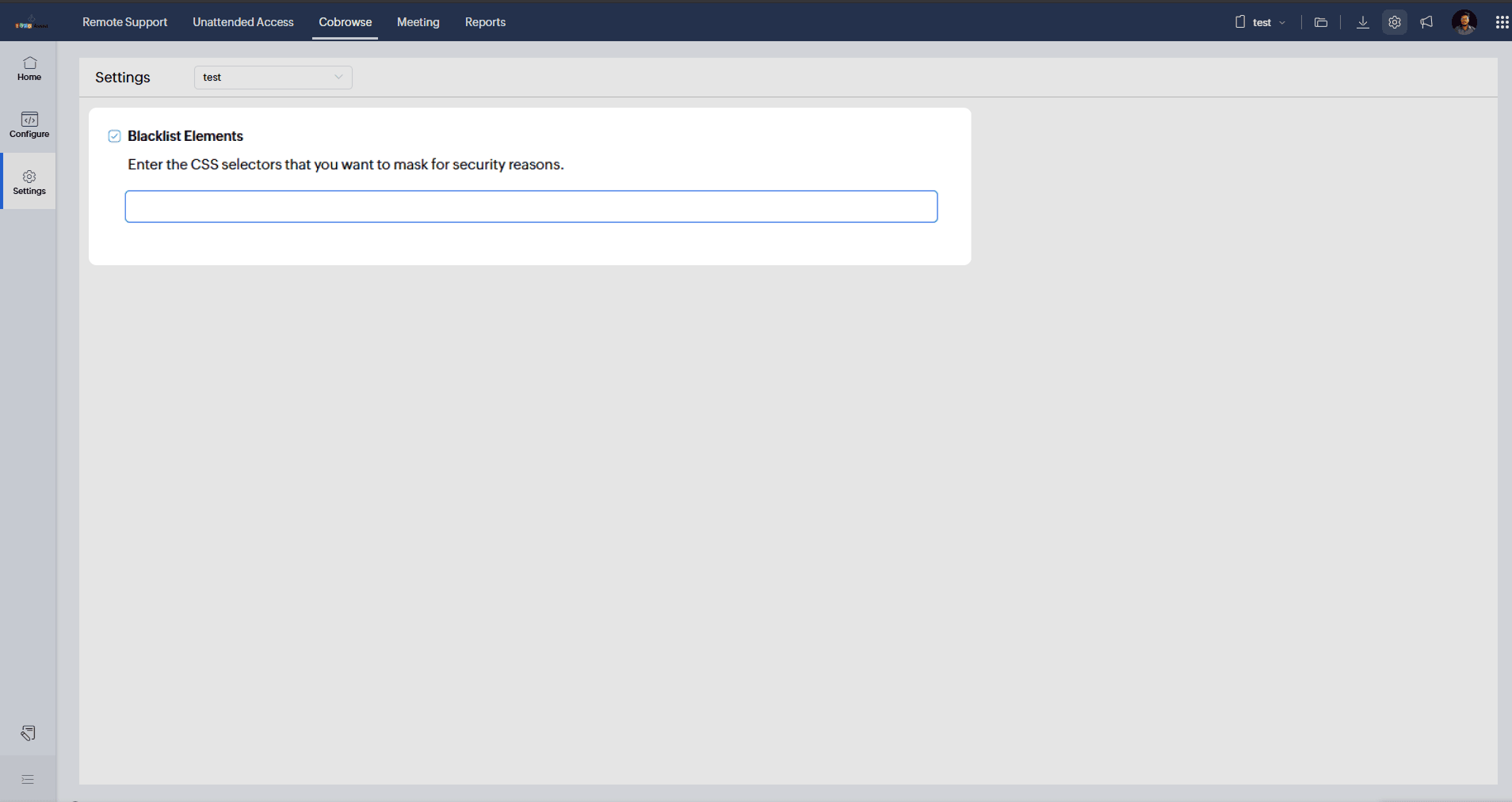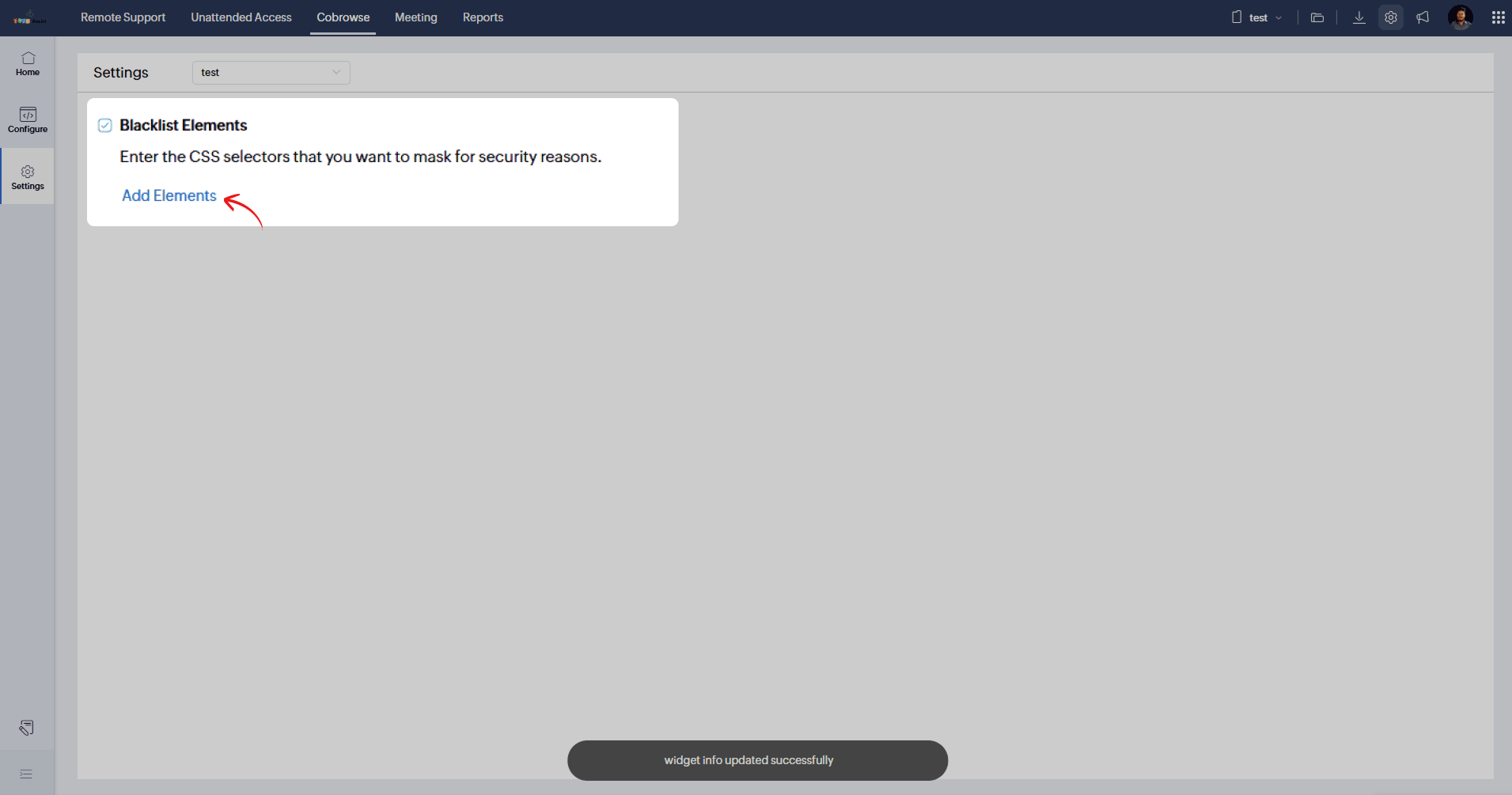 To protect your customers’ sensitive or personal information during a Cobrowse session, you can mask specific elements on your website using the Blacklist Elements option. This ensures that fields like passwords, payment details, or any private data remain hidden while you assist the customer in real time.