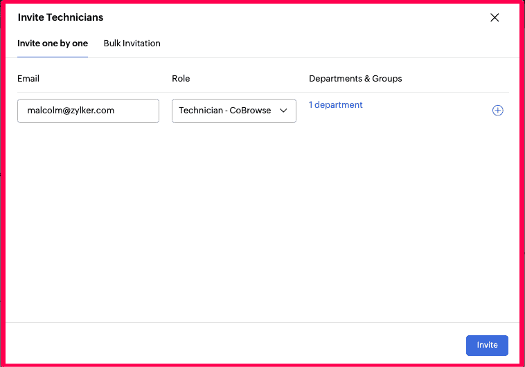 Click Invite Technician. You can invite a single technician or multiple technicians at once.