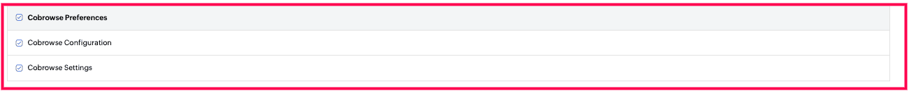 Enable additional permissions such as Configuration, Settings, and Reports View under Cobrowse preferences if needed.