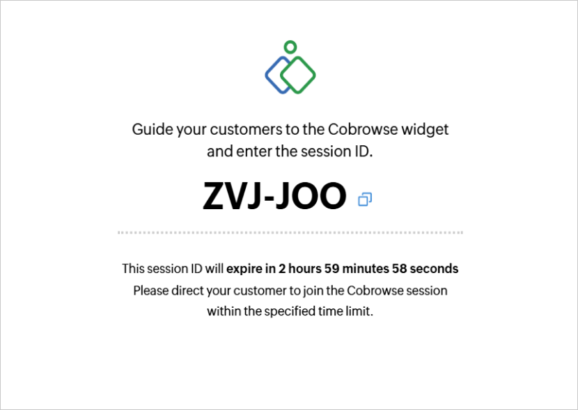 Share this session key with your customer and guide them to join the cobrowse session using the widget on your website.