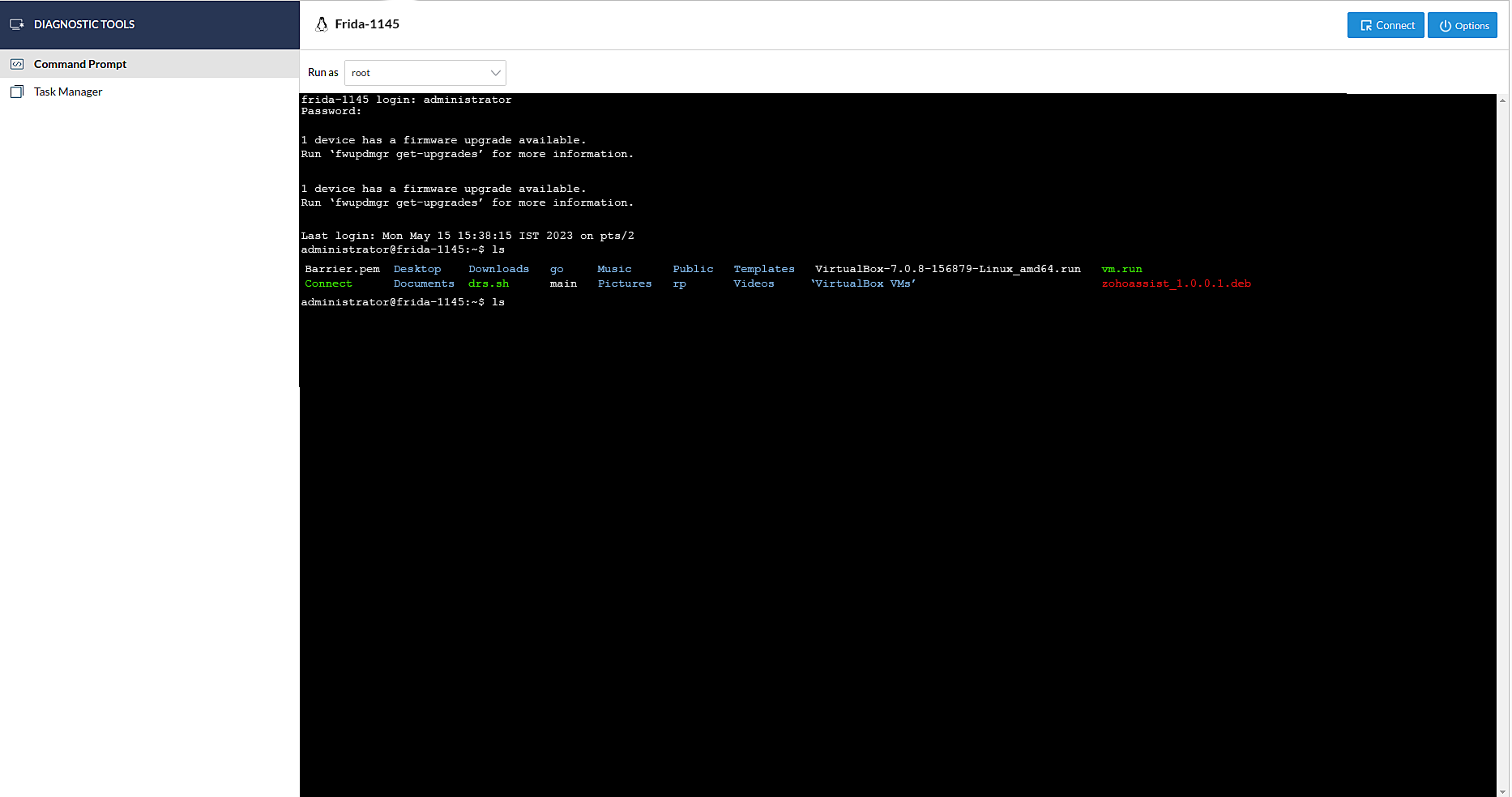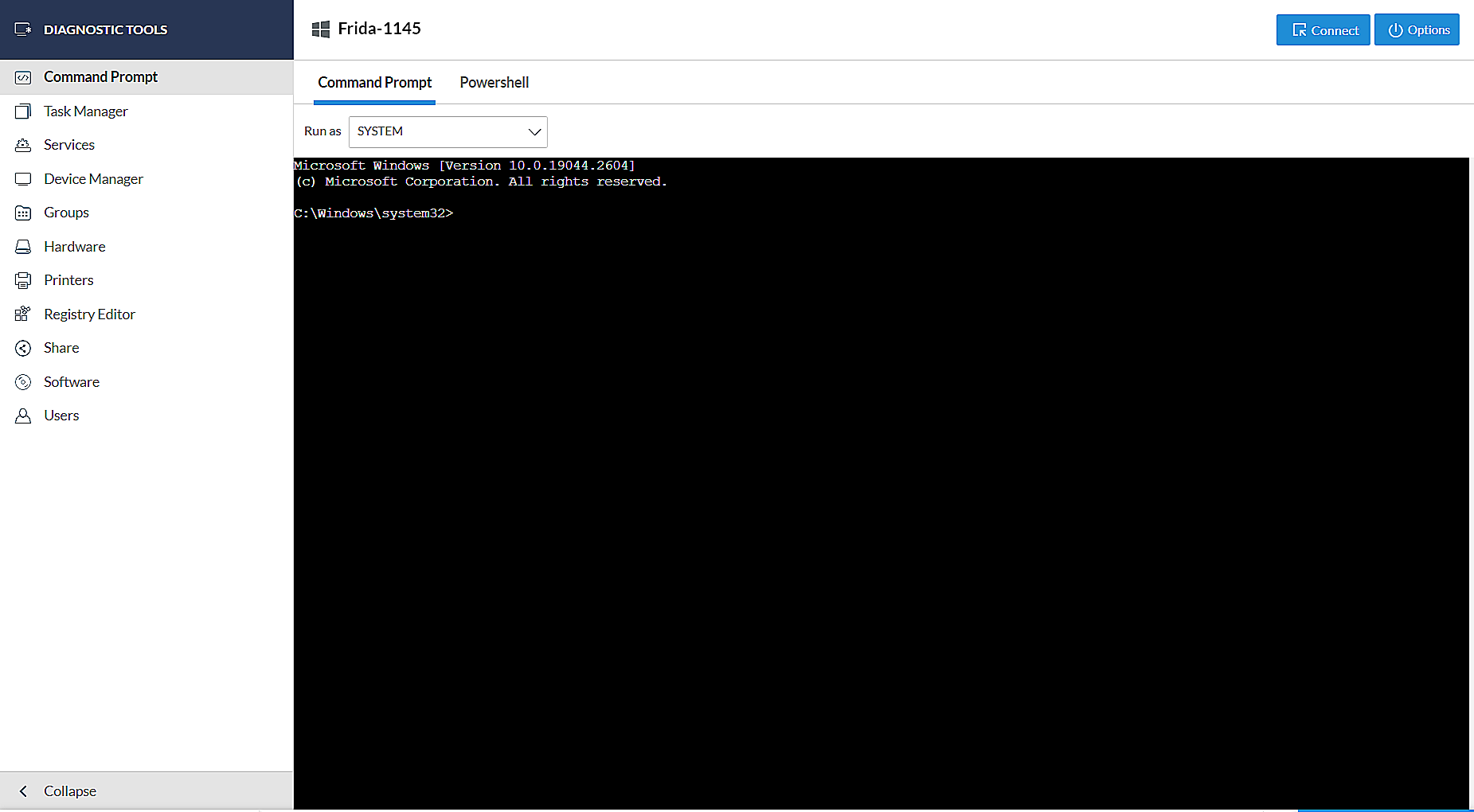 The remote command prompt enables you to connect securely to your remote computer and gain terminal-like access. This tool is similar to SSH access, as it allows you to establish a secure connection using your login credentials on Linux OS device. This is also useful in providing technical support or troubleshooting for devices with Windows operating system.