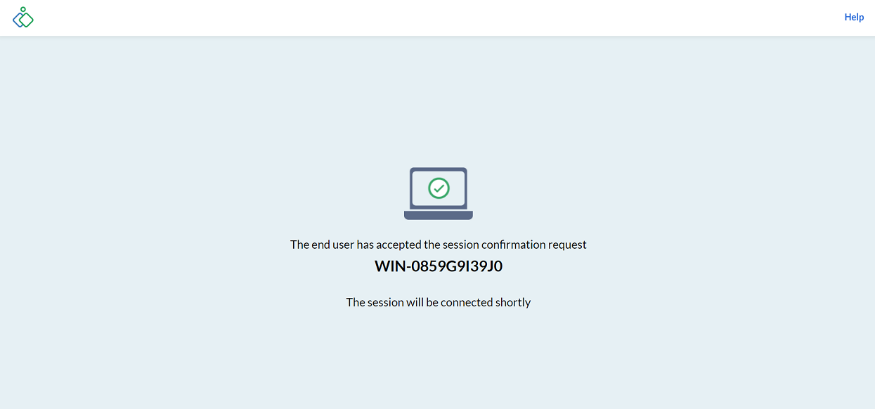 Once the session confirmation is enabled, your remote customer will be able to accept/decline the session request. Session Confirmation Request Accepted