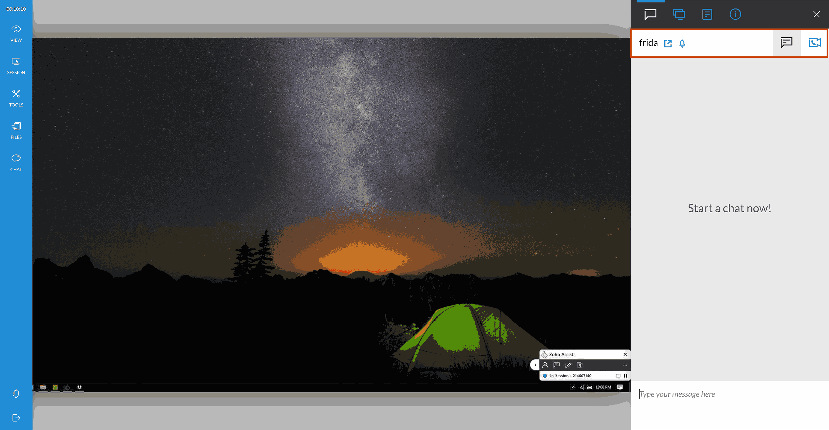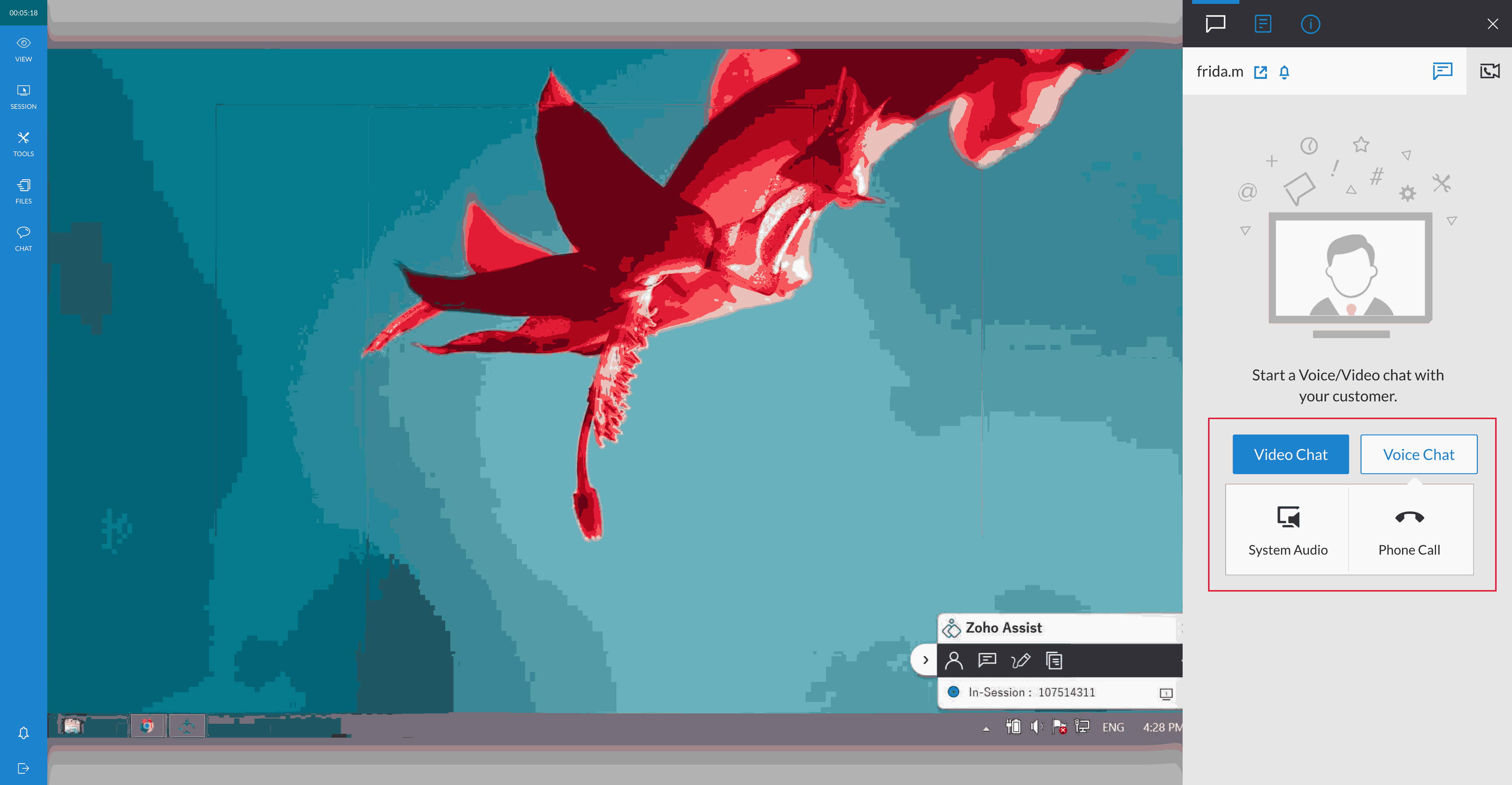 During an ongoing session, technicians can click the Video/Audio chat icon.