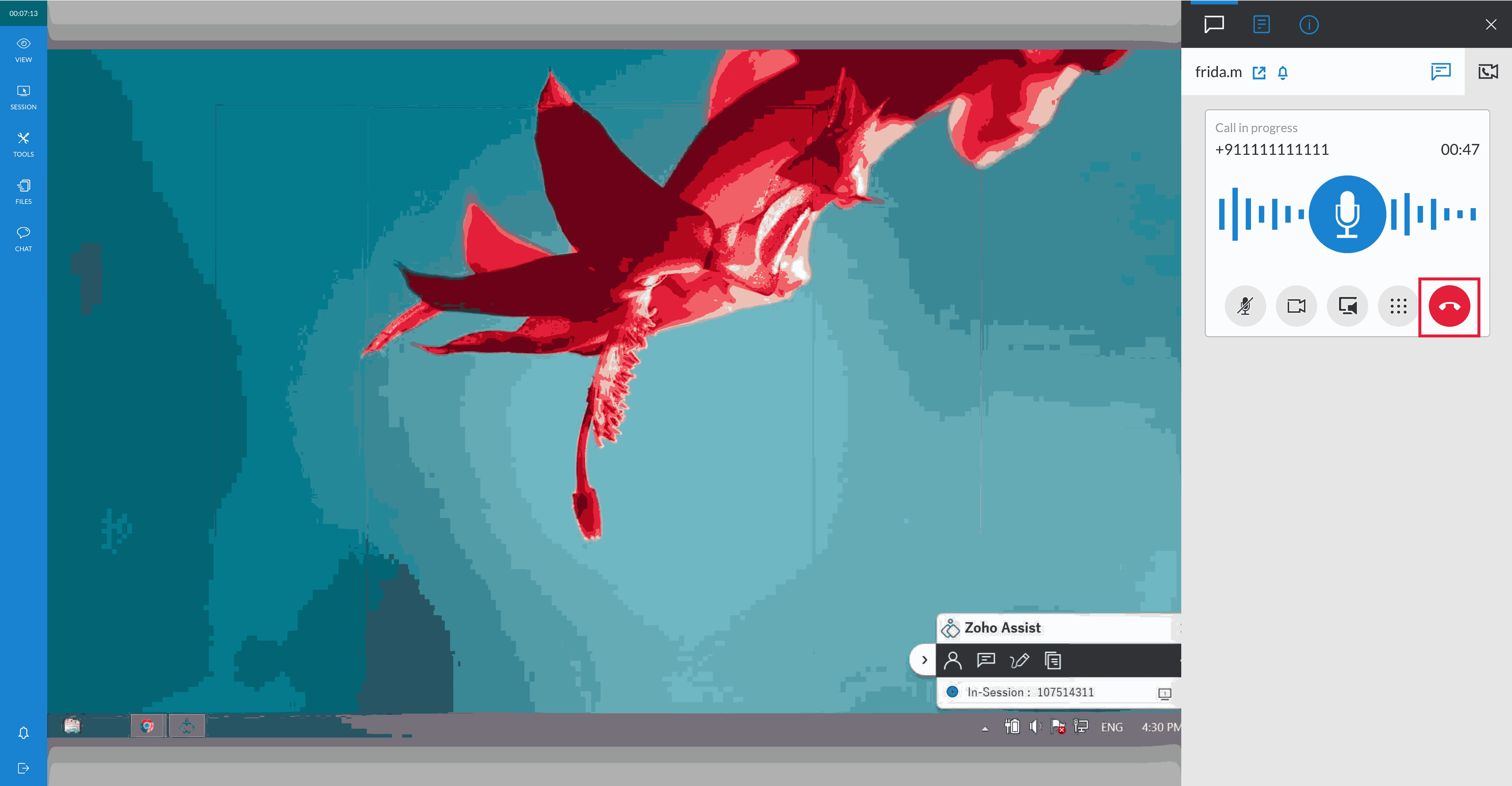 Zoho Assist has now facilitated easy communication with the VoIP feature. Technicians can now switch to phone calls, provided they have the customer's contact number. This will allow the technicians to dial a number along with the country code and communicate effectively during a session.