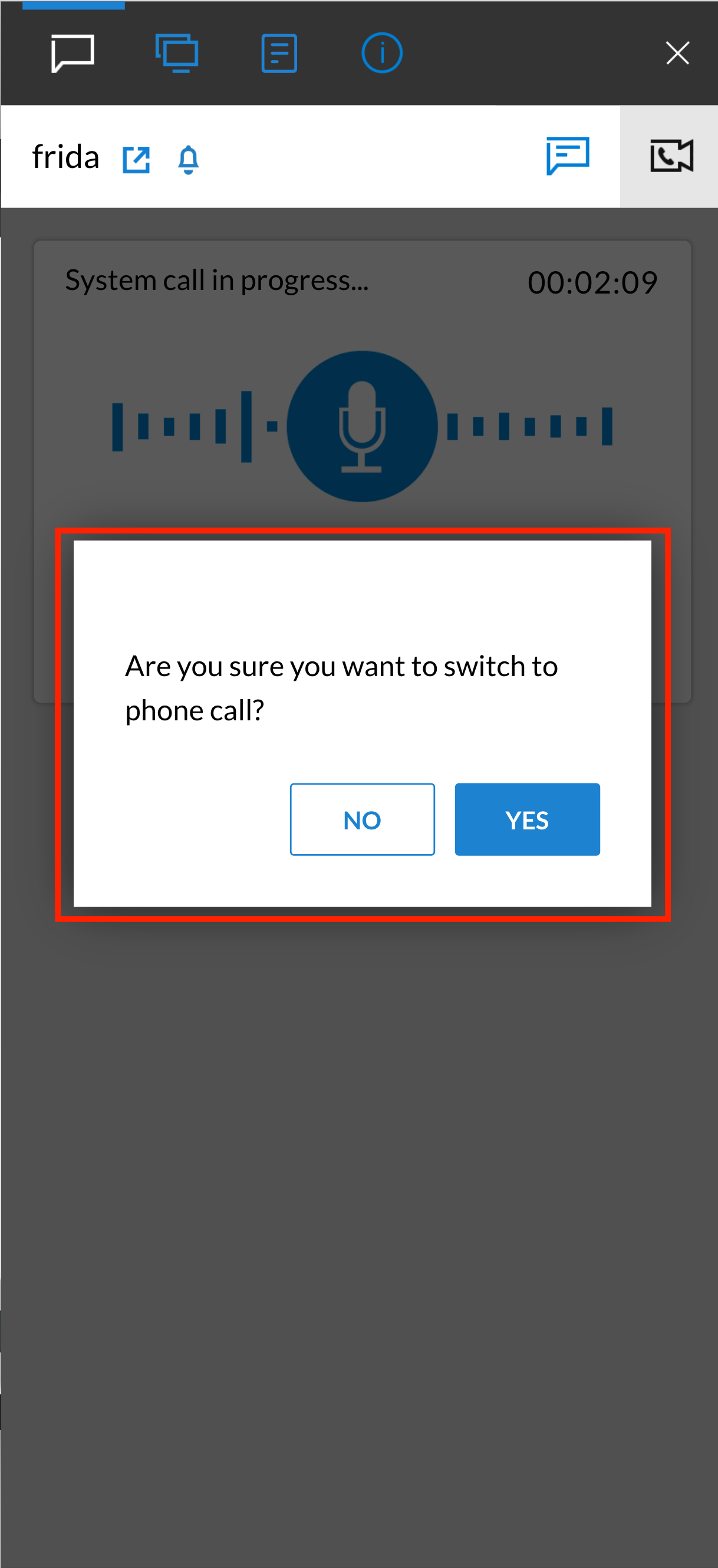 If you are already on a voice call and want to switch to phone call, click the Yes button when the confirmation prompt appears.
