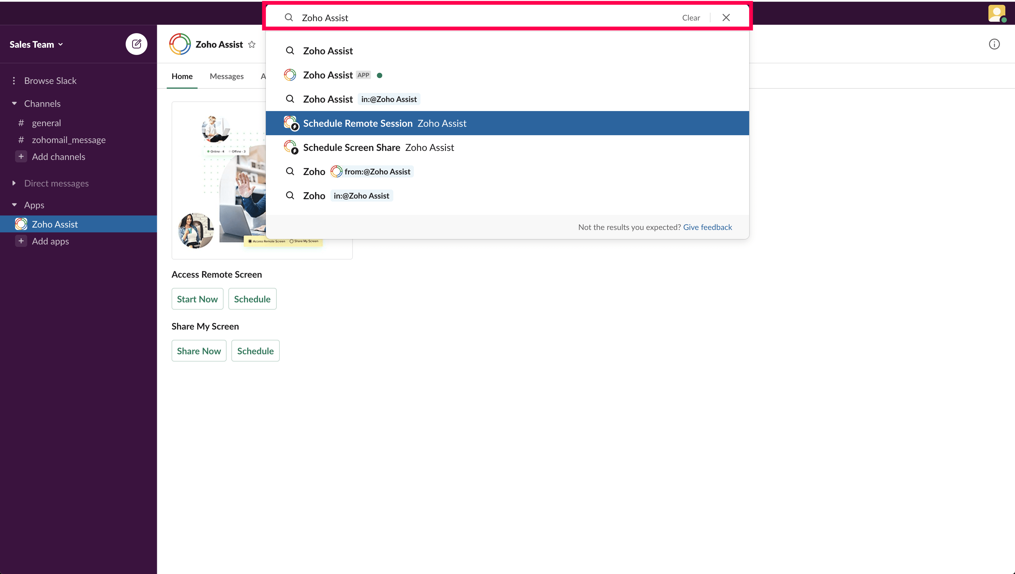 - Schedule a screen sharing session - /zassist_schedule_screen_sharing <email address>
