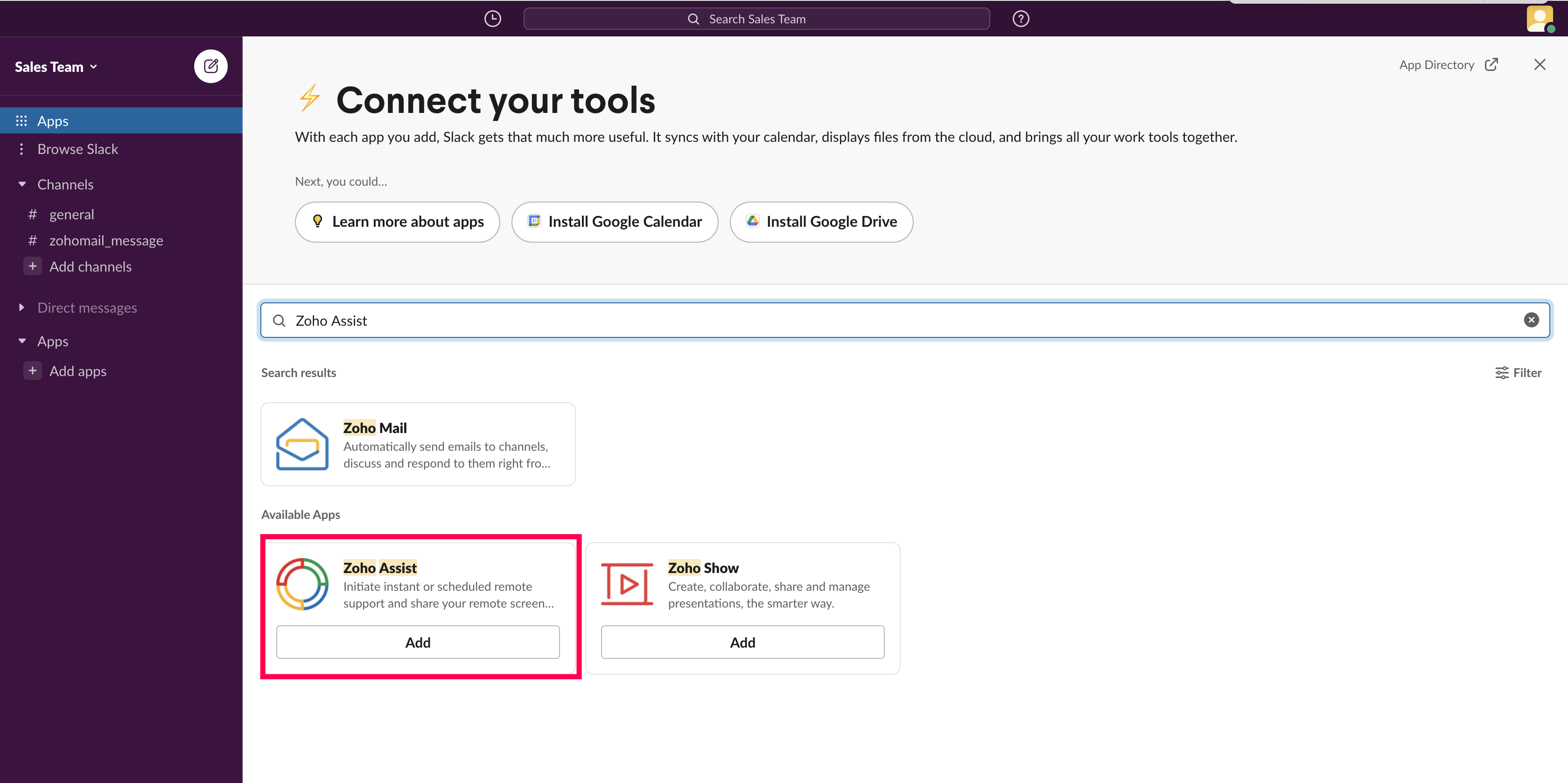 - Log in to your Zoho Assist account before you begin the authentication process in Slack.