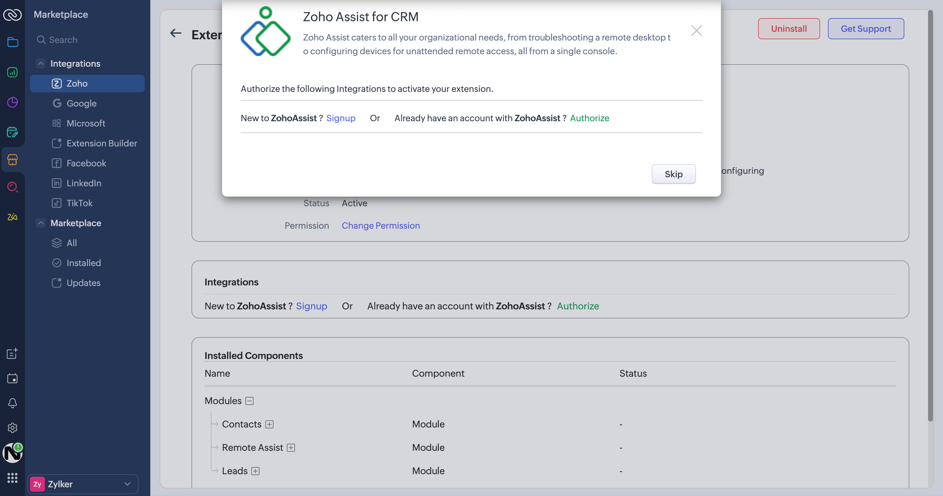 How to enable Zoho Assist for CRM?