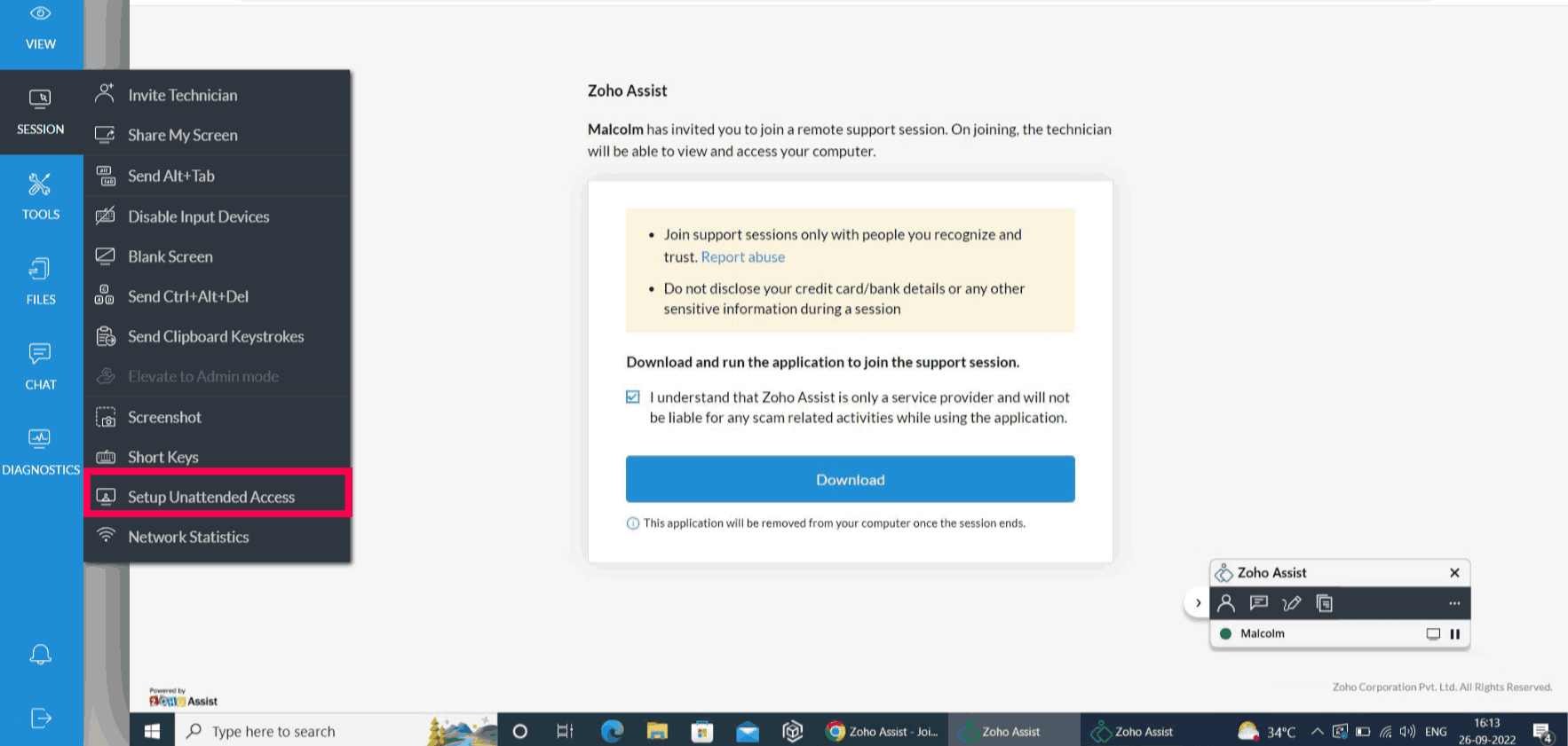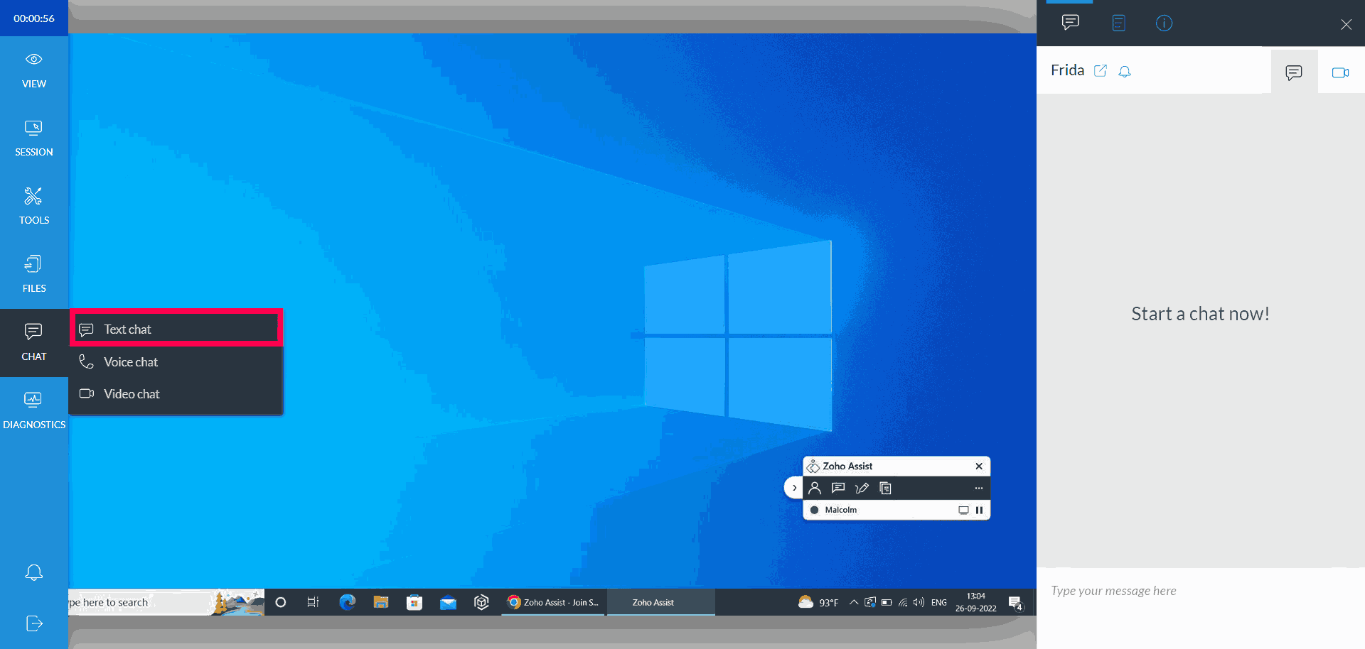 Once the customer joins the session, you can communicate with them using the built-in chat window. This helps guide customers through installations or troubleshooting.