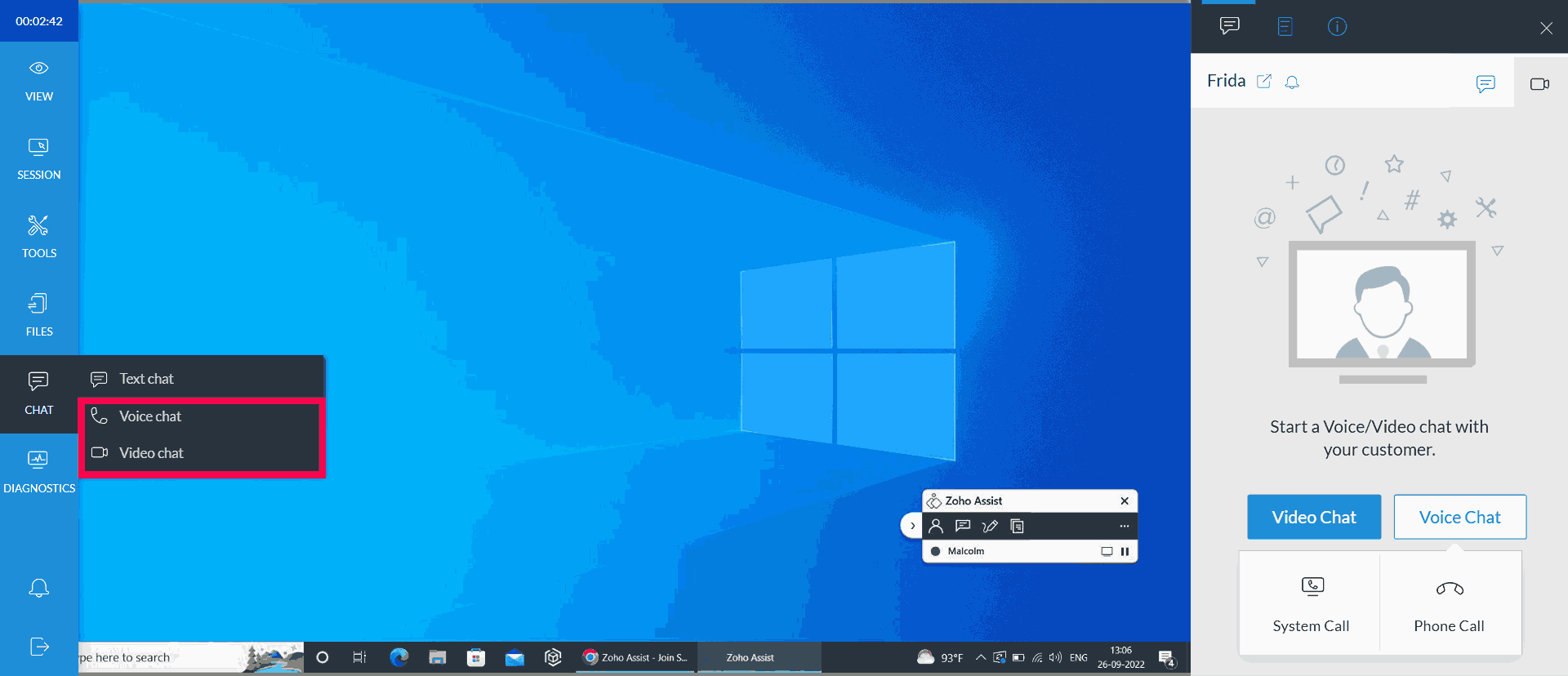 Voice and Video Chat enables technicians to communicate with customers via audio or video calls during a remote session.