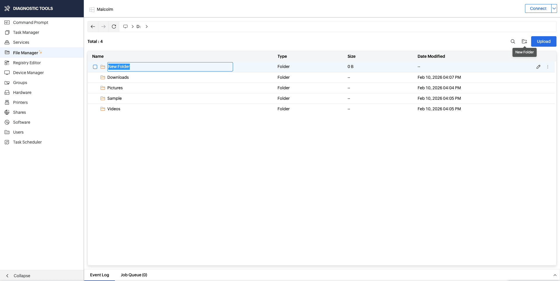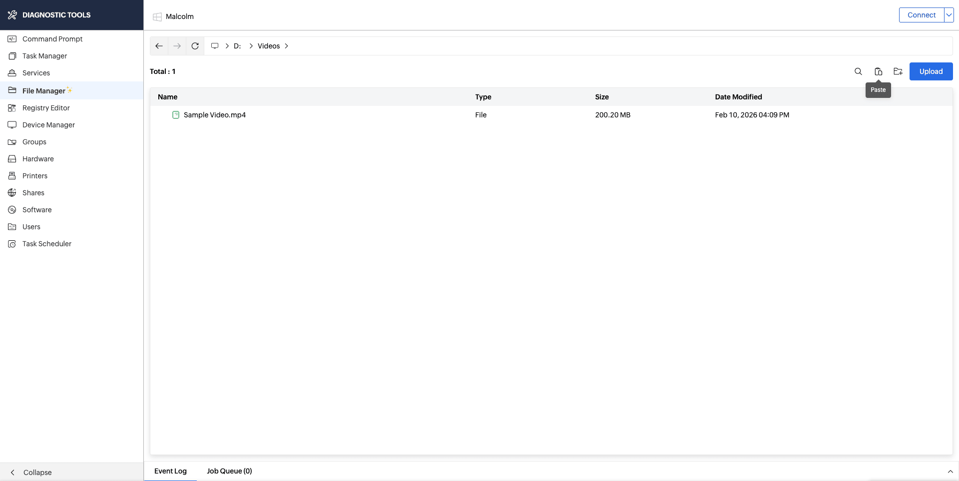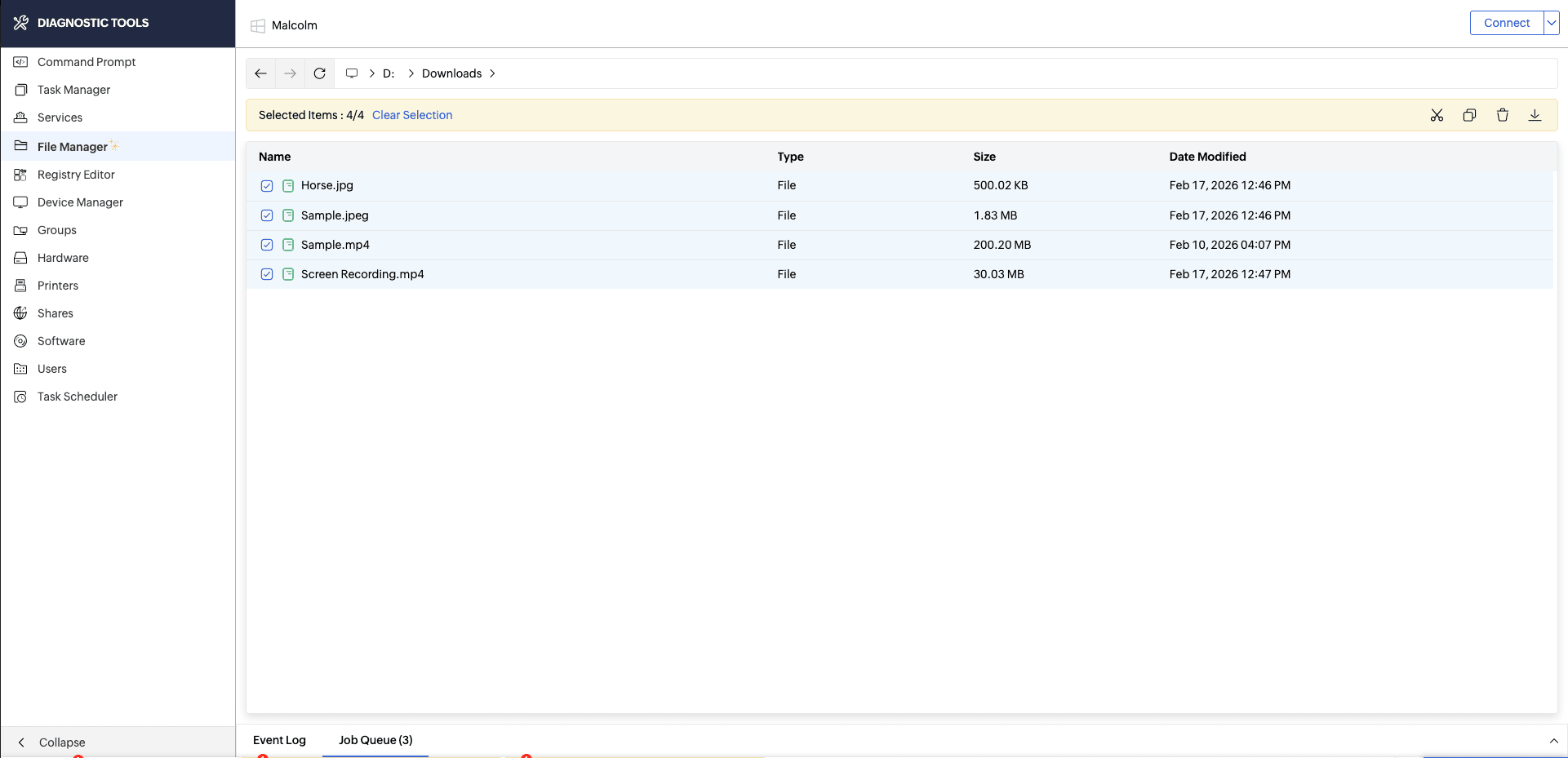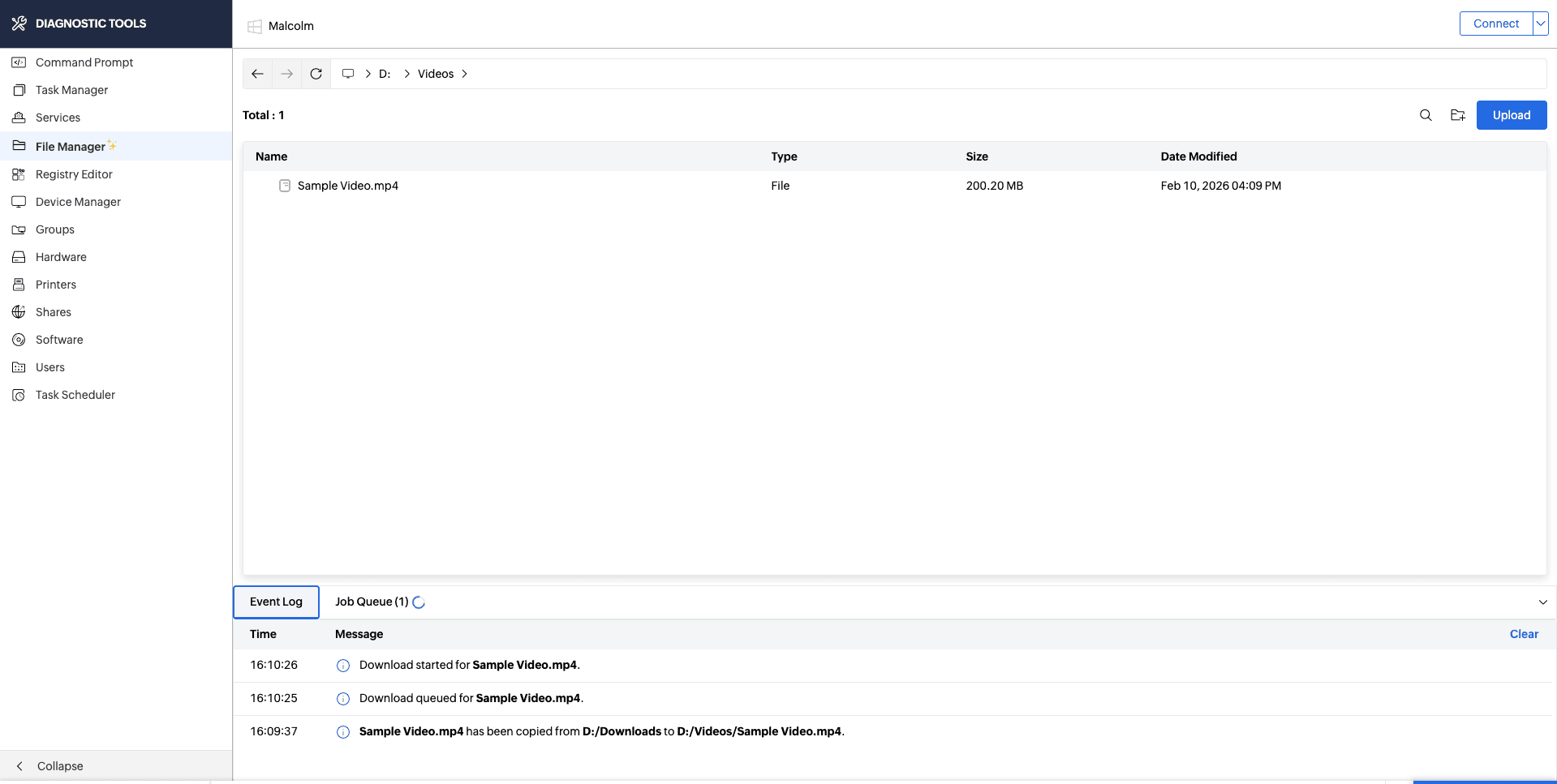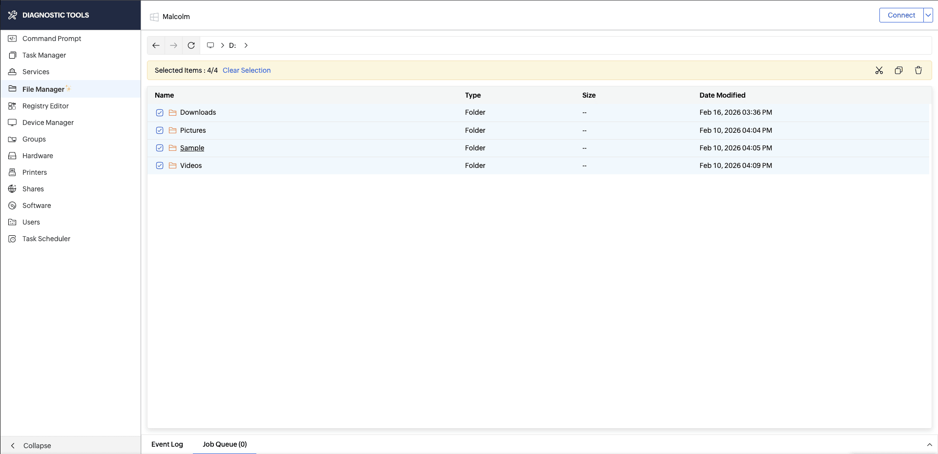 Using File Manager, technicians can perform common file operations on both technician and remote devices.