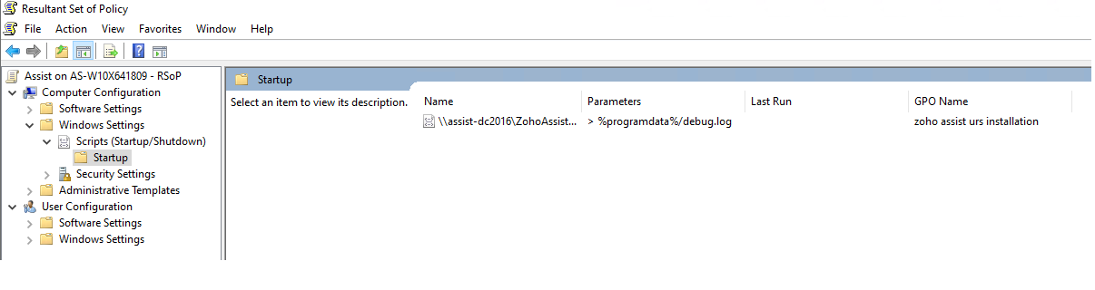 - After a quick restart, check the last running status of the RSOP for the startup script.