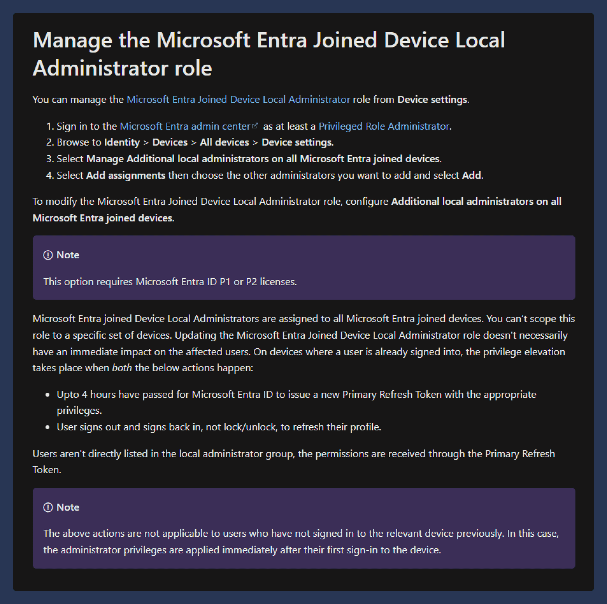- Log out from the Azure AD user account and log in using a local admin account.