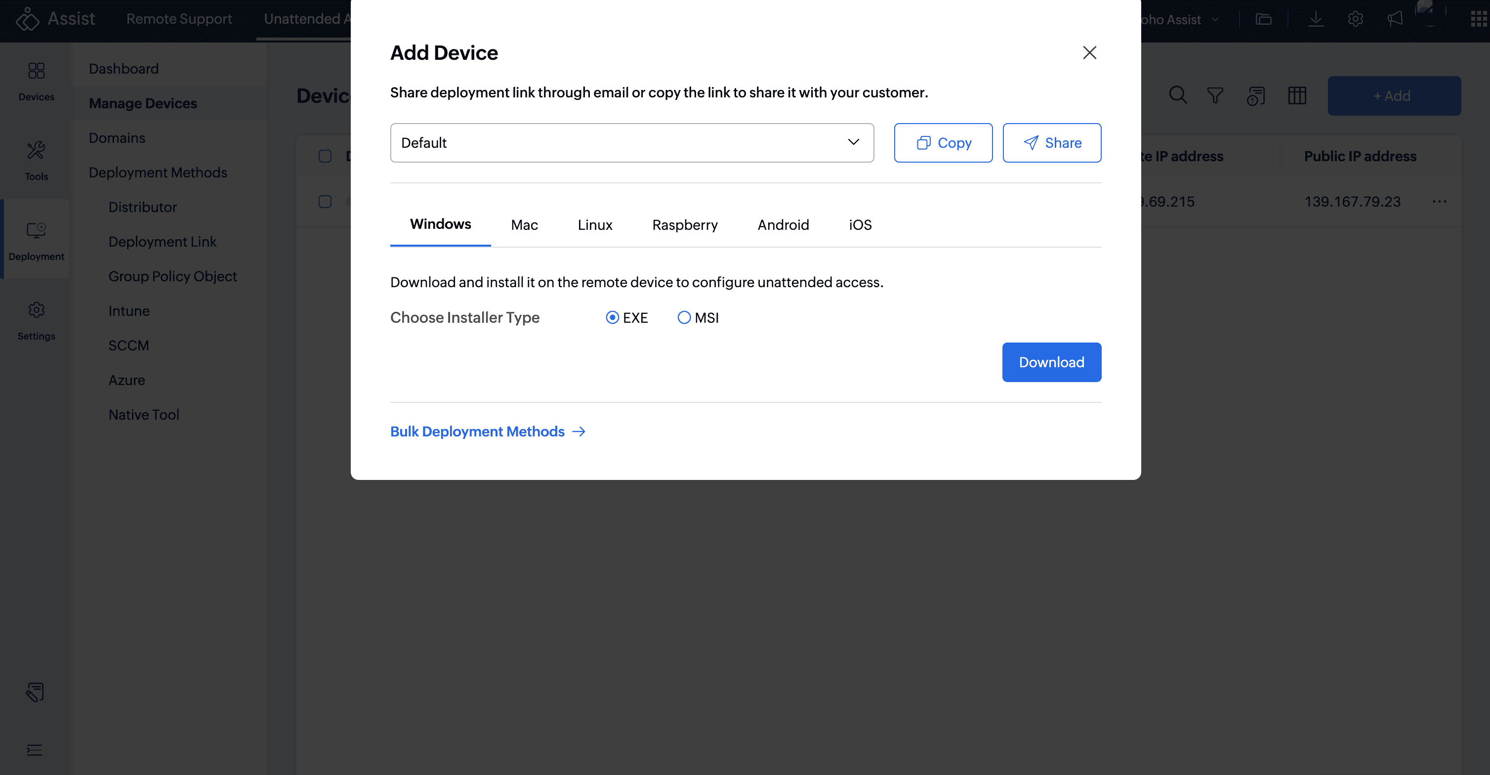 Please ensure you always use the latest version of the Zoho Assist Unattended Installer for enhanced performance, security patches, fixes, and access to the newest features. Using an older version, especially one over a year old, may result in compatibility issues or limitations.