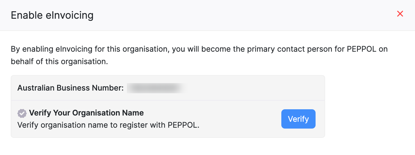 If it doesn’t, click the Organisation Name dropdown and select the organisation that you want to register in PEPPOL.