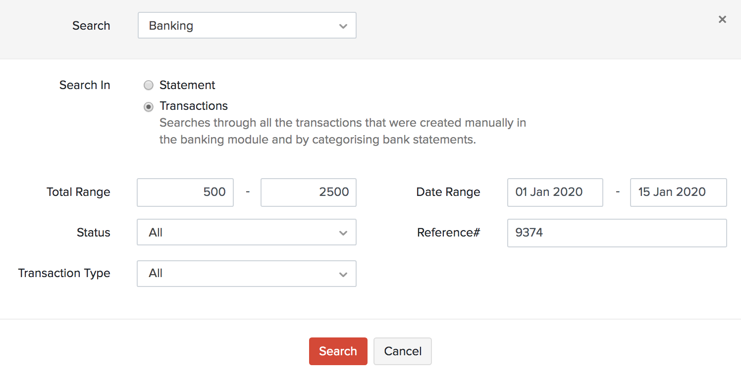 Statements: You can select this option if you want to search through all the bank statements that were fetched or imported. By doing so, you will be able to filter the statements that are matched, categorized, uncategorized and manually excluded.
