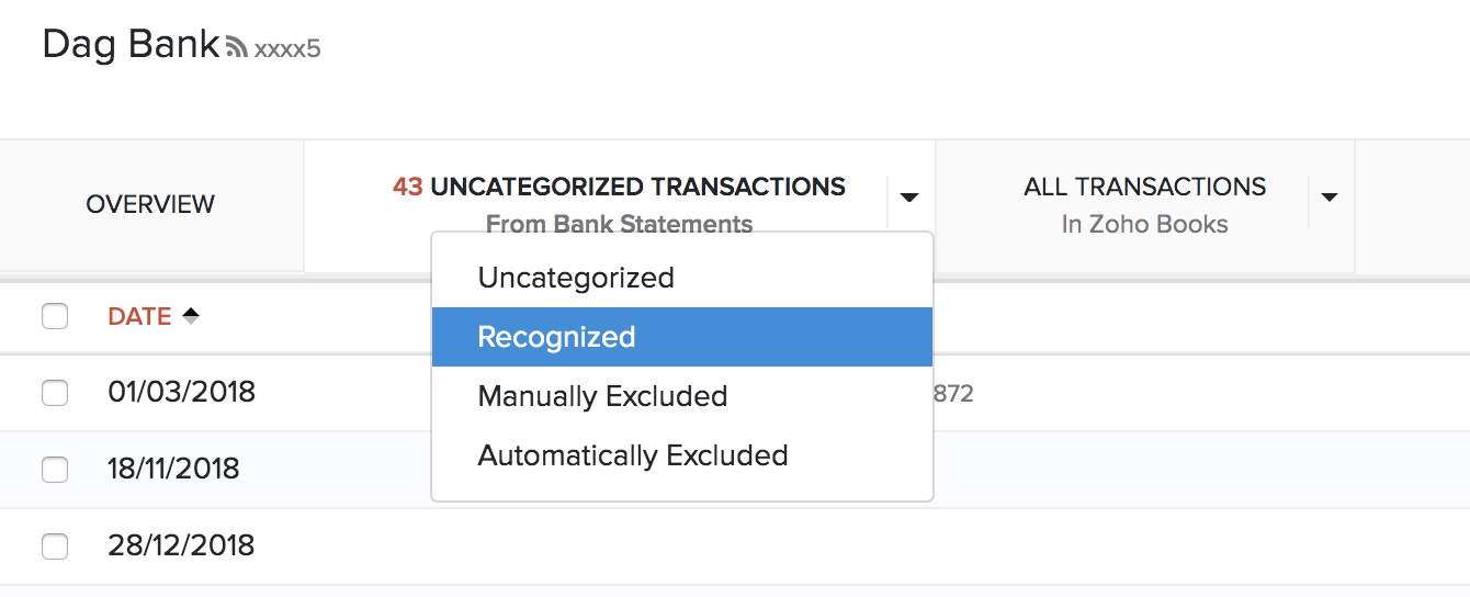 Transactions: Transactions are the statements that are already categorized or matched. You can select this option if you want search the categorized transactions or the transactions that were added manually. By doing so, you will be able to filter the transactions that are matched, categorized, unreconciled and manually added.