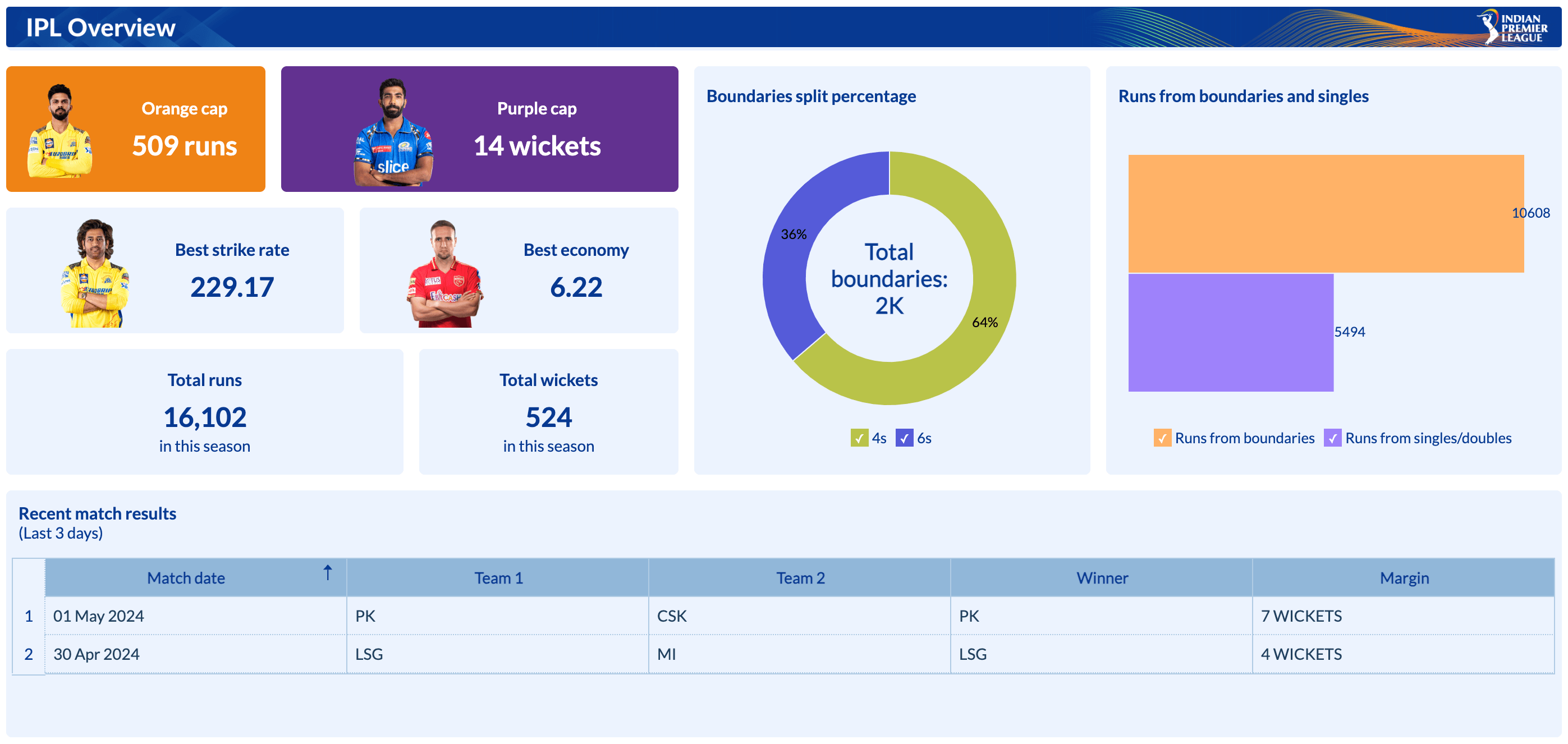 The 2024 edition of the Zoho Analytics IPL dashboard features several new and engaging elements.