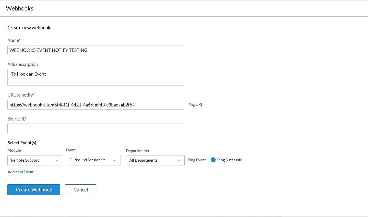 Click Create Webhook. Your webhook can be edited from the Webhooks Menu at any time.