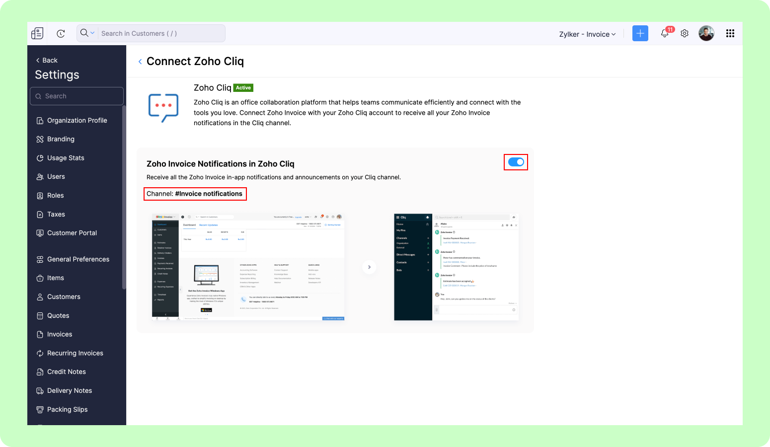 Stay connected with your customers by integrating Zoho Invoice with Zoho Cliq