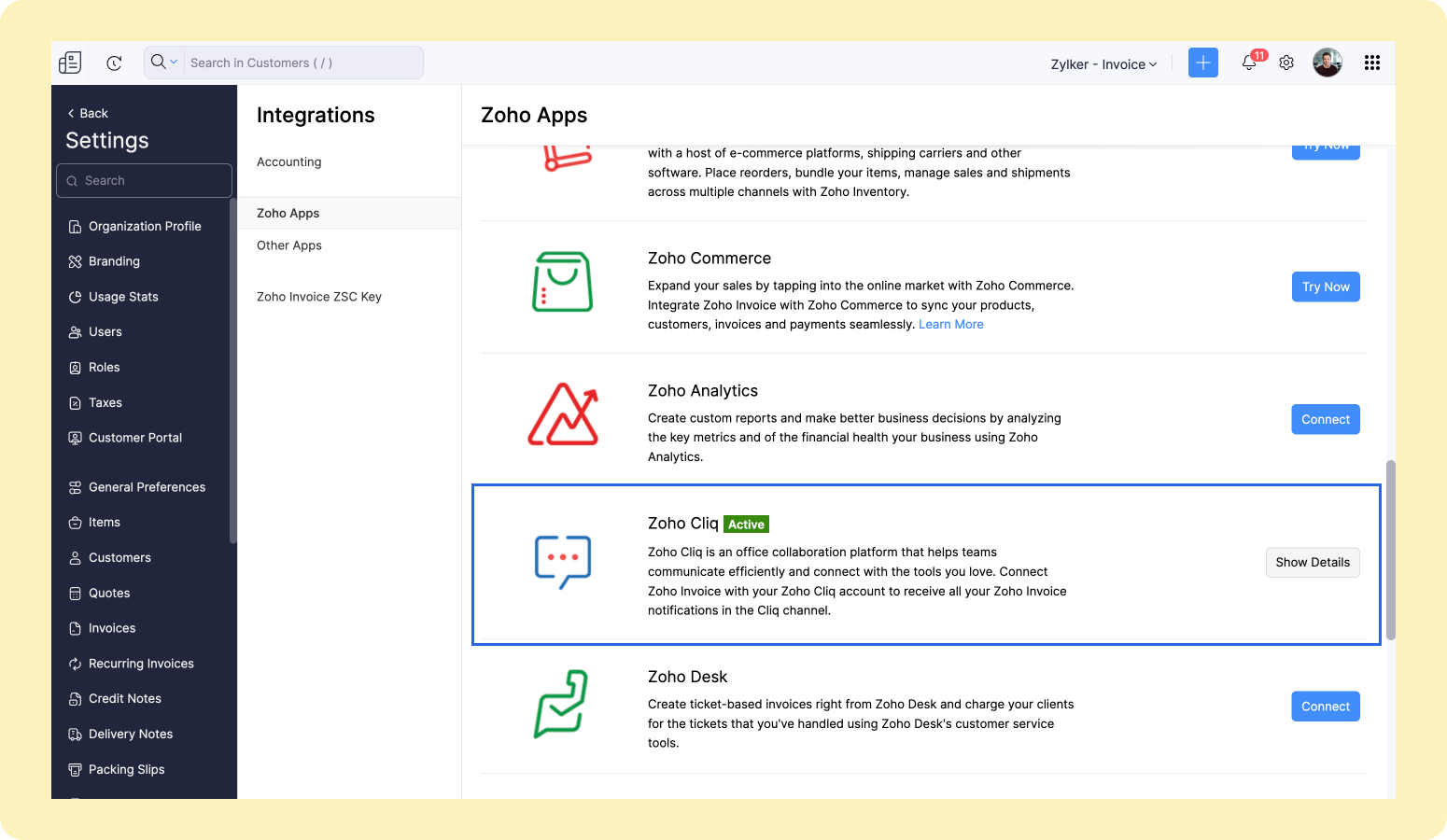 Setting up the Zoho Invoice-Zoho Cliq integration is simple and straightforward. By following a few easy steps, businesses can start receiving real-time notifications and streamline their invoicing workflows: