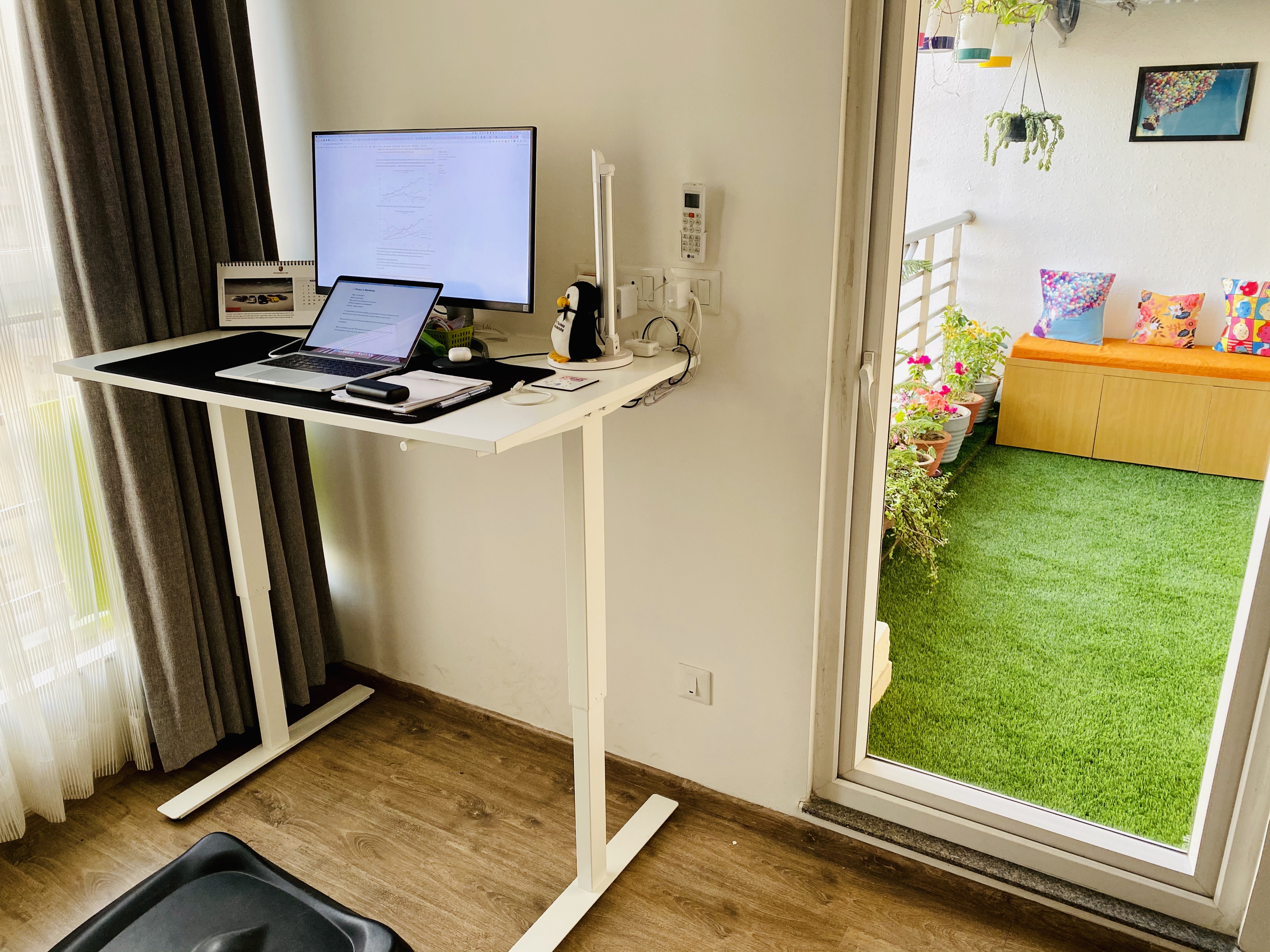 Esta es mi estación de home office para el trabajo remoto. Es bueno tener un espacio separado, designado especialmente para trabajar.