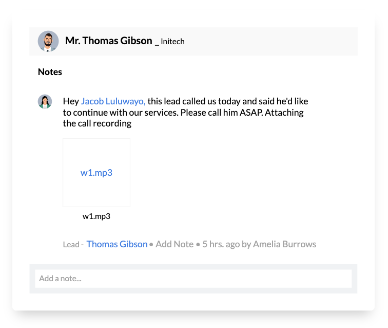 Certains CRM, comme celui de Zoho, permettent également de dicter vos notes à l’IA 🤖 ou d’enregistrer un message audio pour le convertir ensuite en texte, vous assurant ainsi de ne rien perdre, même lorsque le timing est serré.