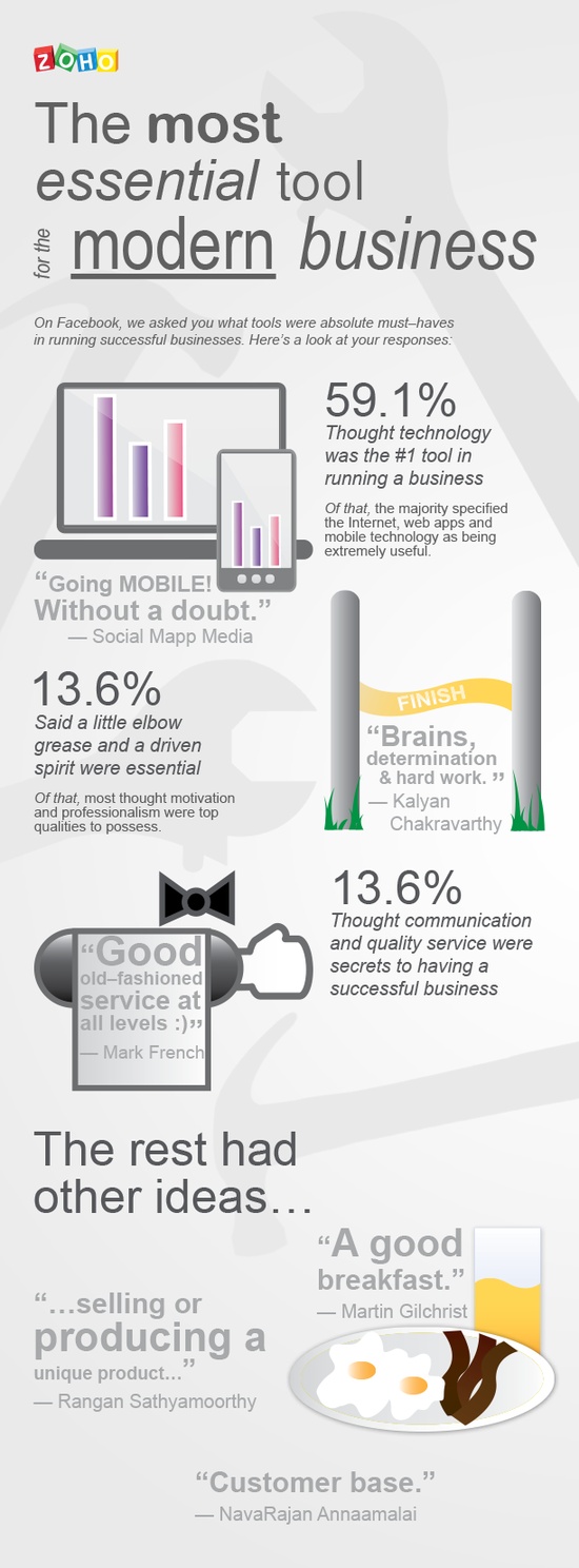 What tools are imperative in running a successful business? We asked you just that on Facebook. Interested in what your peers had to say? To help you visualize the insight you and other professionals provided, we’ve collected responses from our post and created an infographic with the results.