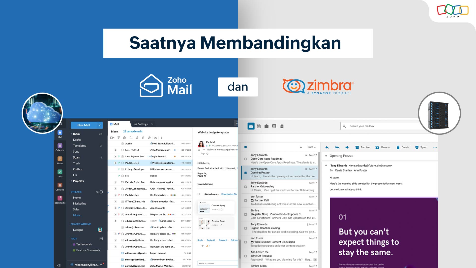Memilih platform email perusahaan menjadi hal krusial dan sangat penting bagi semua bisnis, tak peduli kecil atau besar. Dua dari banyak pilihan populer penyedia layanan email di kalangan bisnis adalah Zoho Mail dan Zimbra.