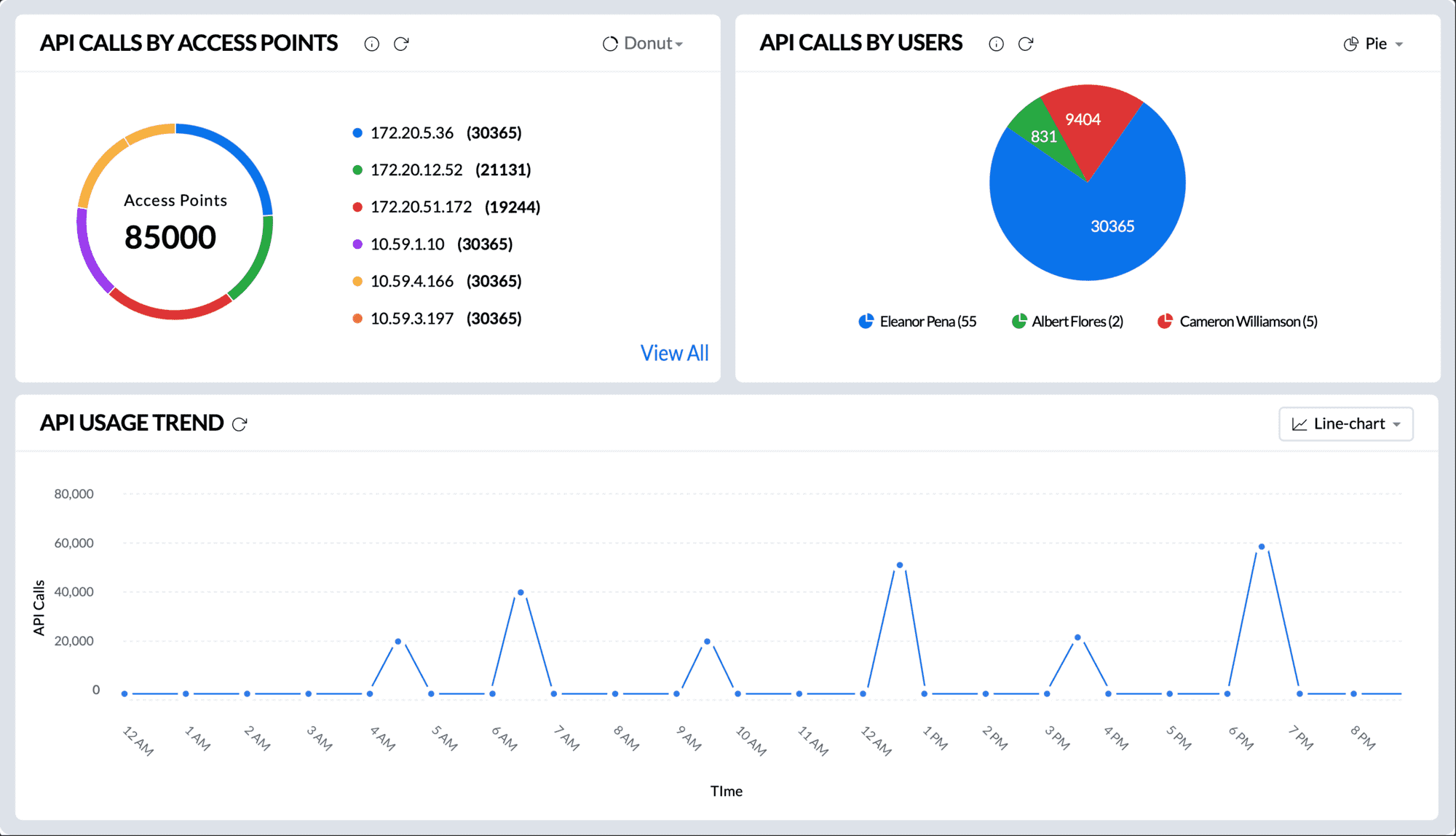 Tendências de uso: Representação gráfica das tendências de uso da API ao longo do tempo, permitindo que você monitore mudanças e picos na atividade.