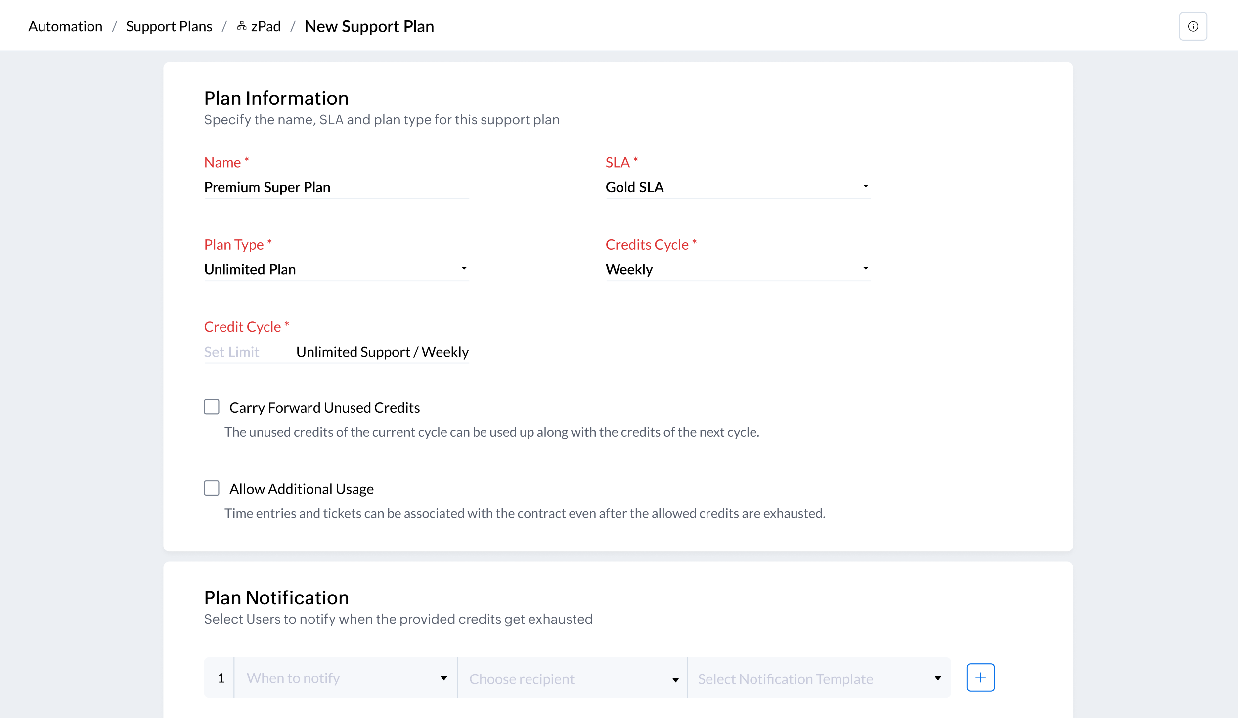 Com o Zoho Desk, você agora pode priorizar clientes com base no plano de suporte que escolheram. Você pode oferecer aos seus clientes planos de suporte personalizados com base no número de tickets que podem enviar dentro de um período específico ou um plano ilimitado com assistência ilimitada.
