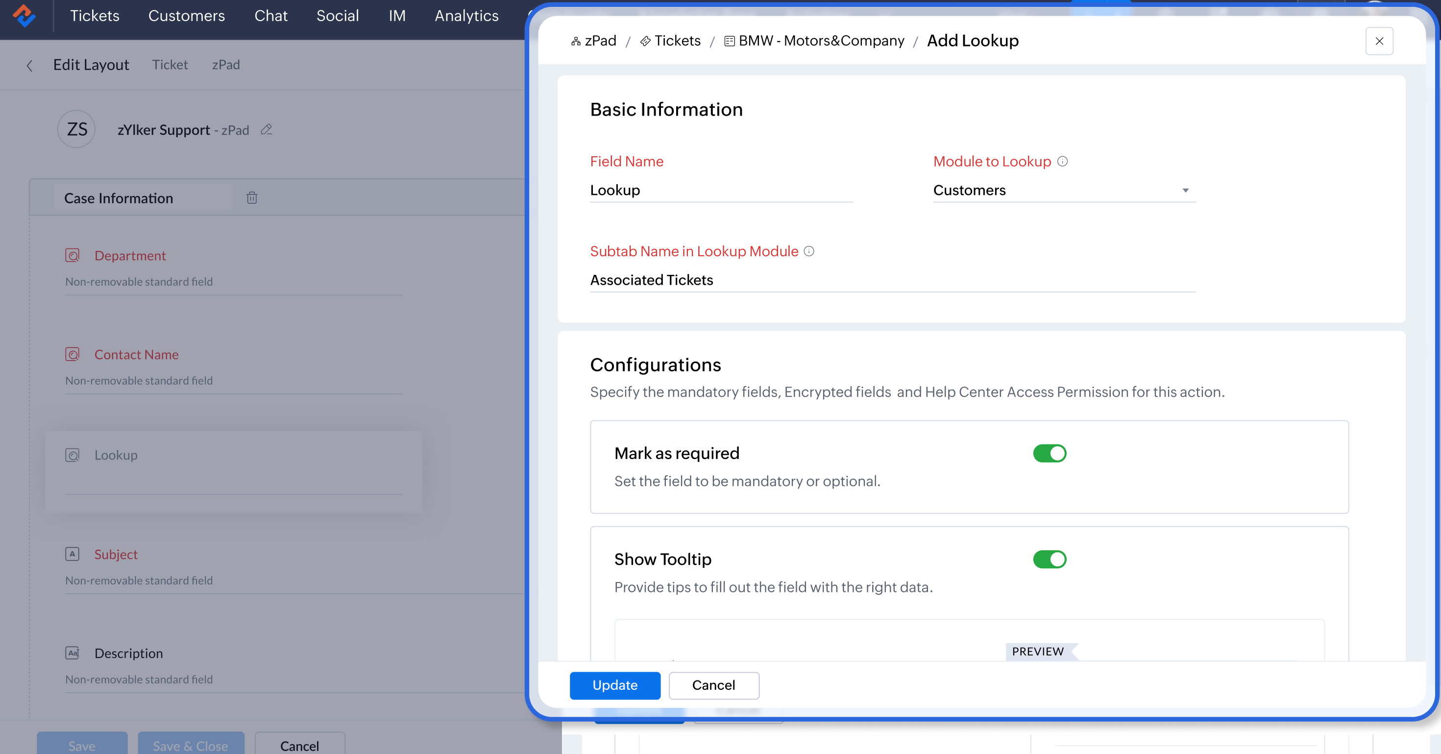 Os campos são uma parte integral dos módulos do Zoho Desk, usados para capturar informações sobre tickets, clientes, produtos e muito mais. Dependendo do tipo de dados que você deseja armazenar, você pode usar campos padrão ou criar campos personalizados. Aqui estão algumas novas adições introduzidas nos campos para melhorar sua capacidade de conectar registros de campo e organizá-los de forma mais eficaz.