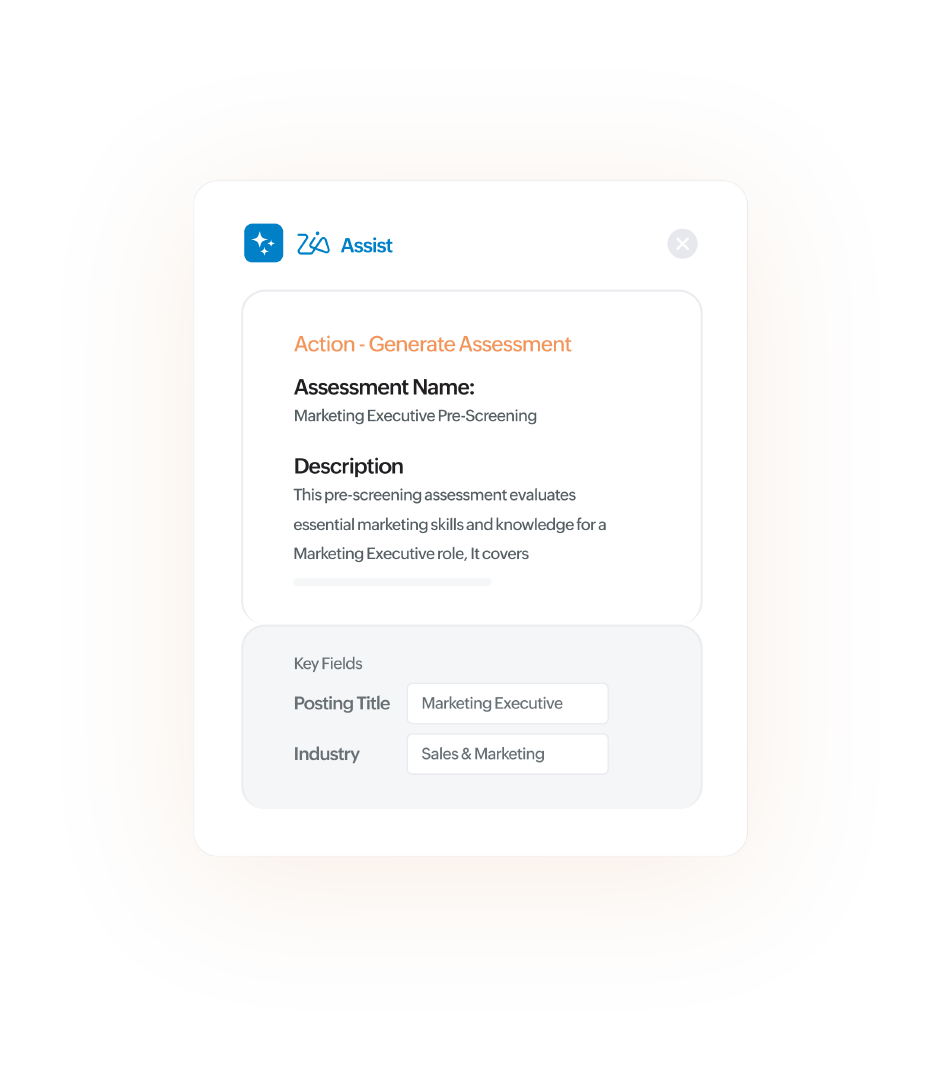 AI-assisted job descriptions Smart candidate sourcing Automated screening Instant assessments Candidate profile summaries Seamless candidate communication