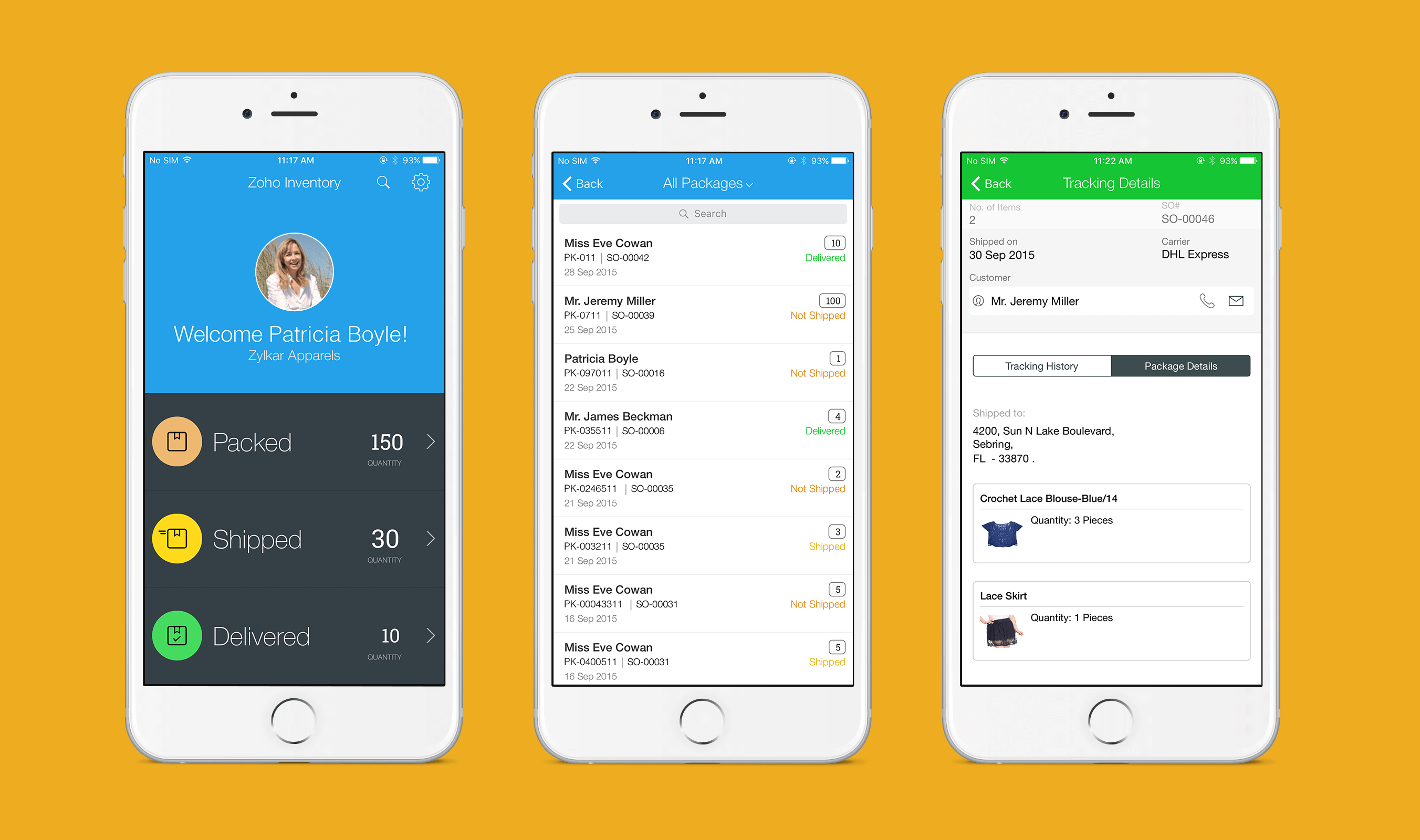 Know which orders require immediate attention and fulfill them promptly. Zoho Inventory caters to the needs of businesses that drop-ship as well. With over 25 shipping service integrations, you can receive real-time shipping rates, as well as the latest in-transit info. You can also receive notifications when the shipment has been delivered and it gets automatically updated in your Zoho Inventory account.