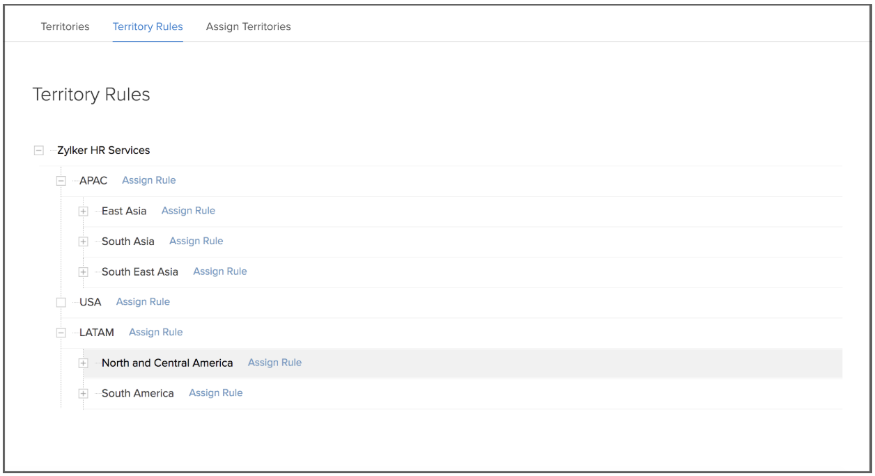 Zoho CRM은 고객 거래처, 연락처, 거래 정보를 위치, 산업, 거래 규모 등 다양한 기준에 따라 여러 영업 구역으로 그룹화할 수 있는 기능을 제공합니다. 또한 보다 세분화된 영업 전략을 위해 하위 구역을 설정하는 것도 가능합니다.