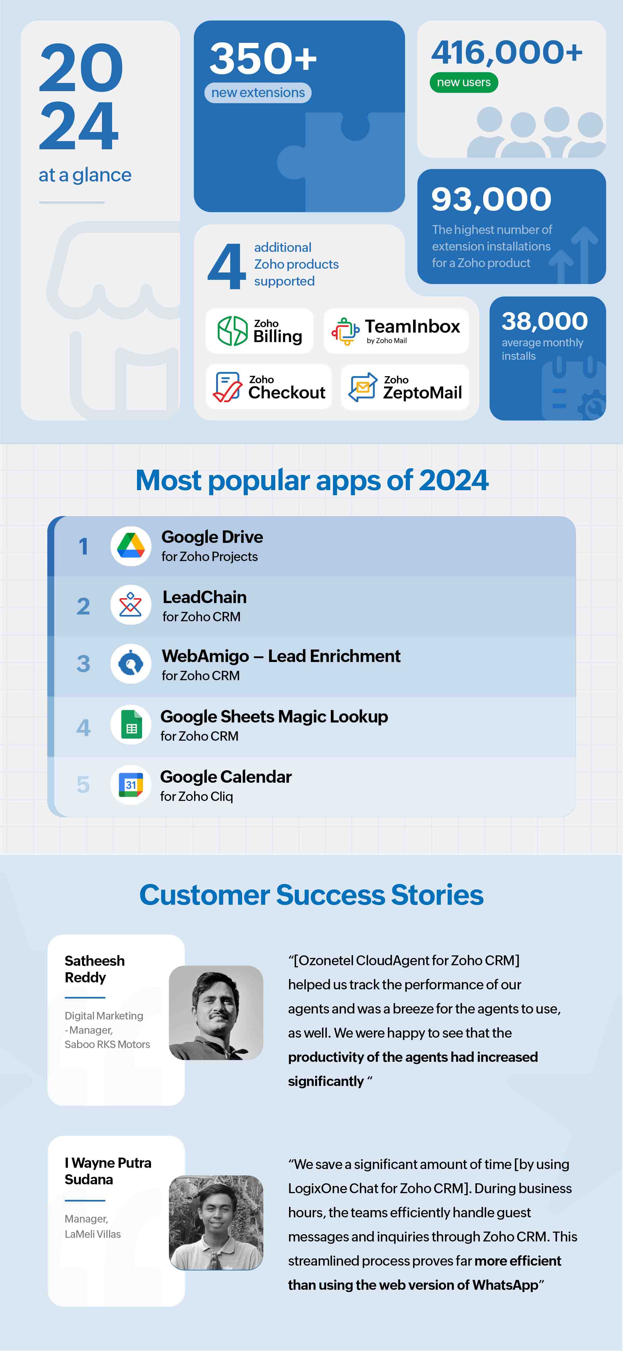 Our mission remains clear: to provide smarter, more customized solutions that enhance productivity and simplify your Zoho experience. Get ready for more innovation, more integrations, and even greater success in 2025!