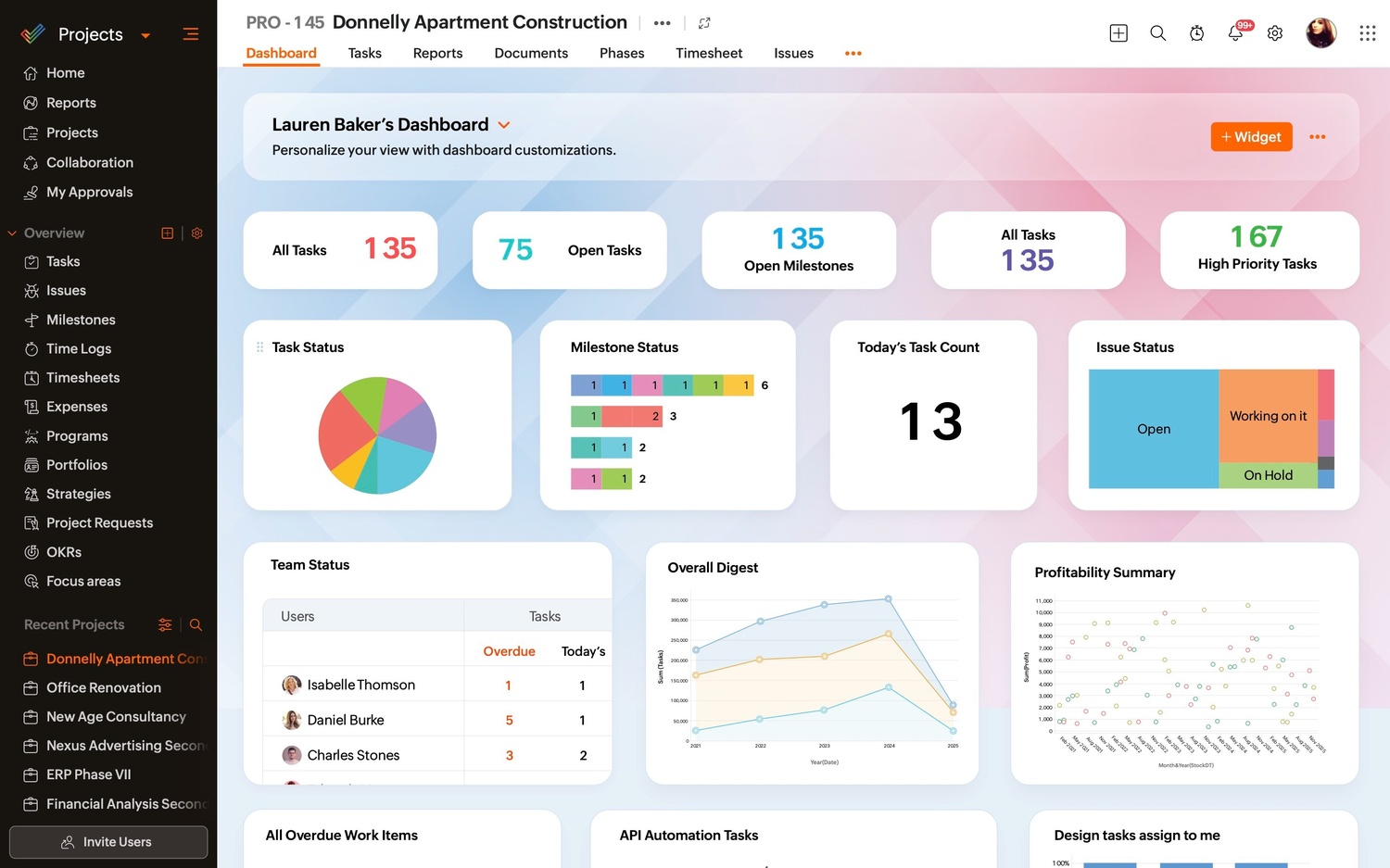 No two teams work the same way, so why should they use the same tools? Shape Zoho Projects to make it your own, complete with practical dashboards, tailored reports, and straightforward modules, along with AI capabilities that are baked into every element. The result is a flexible project management tool that breaks the workaround culture and simplifies your work.