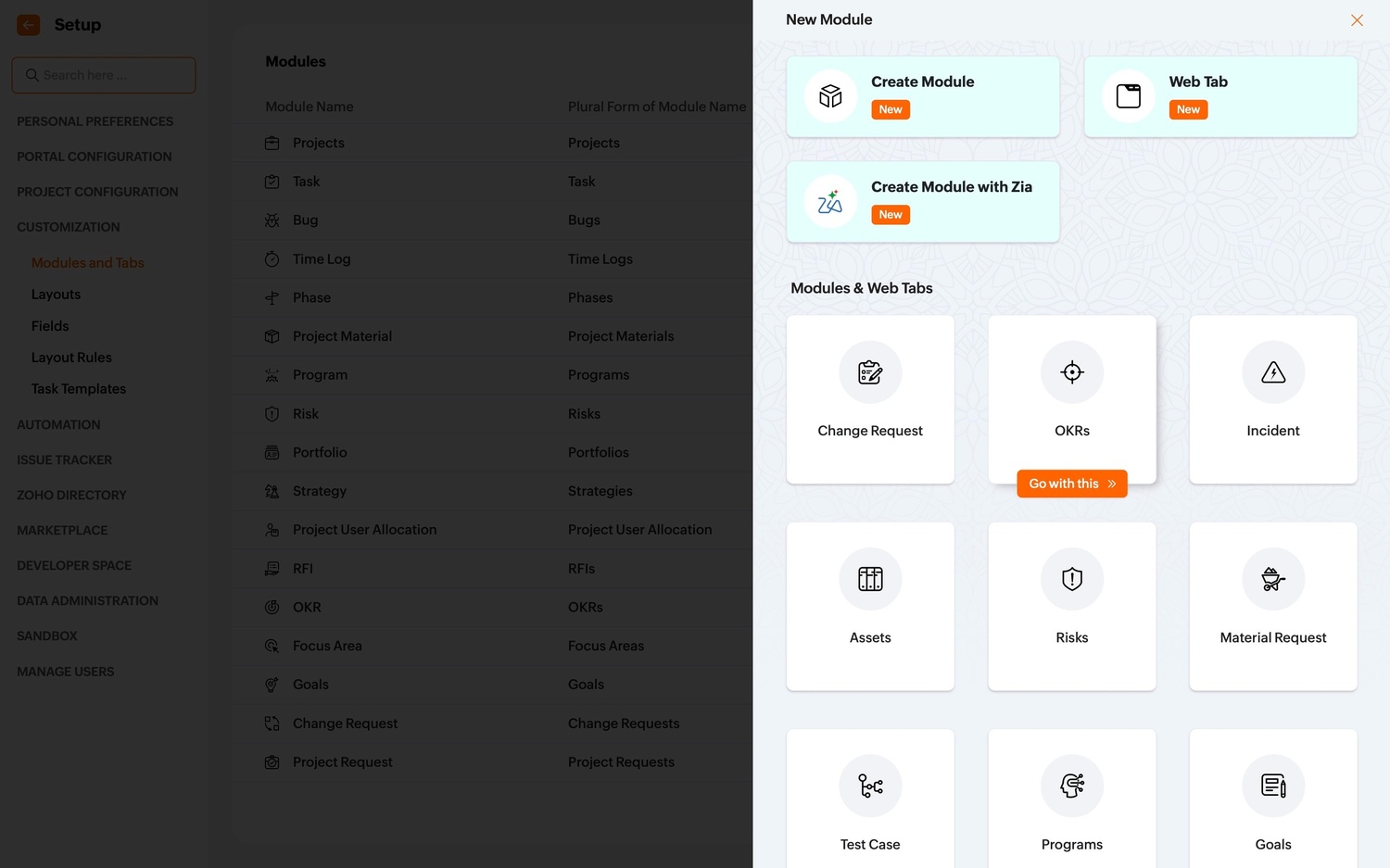 Zia will soon be able to help you create projects. All you need is to do is upload your business requirement document (BRD), and it will deliver an all-encompassing project in no time. This functionality also extends to custom modules.