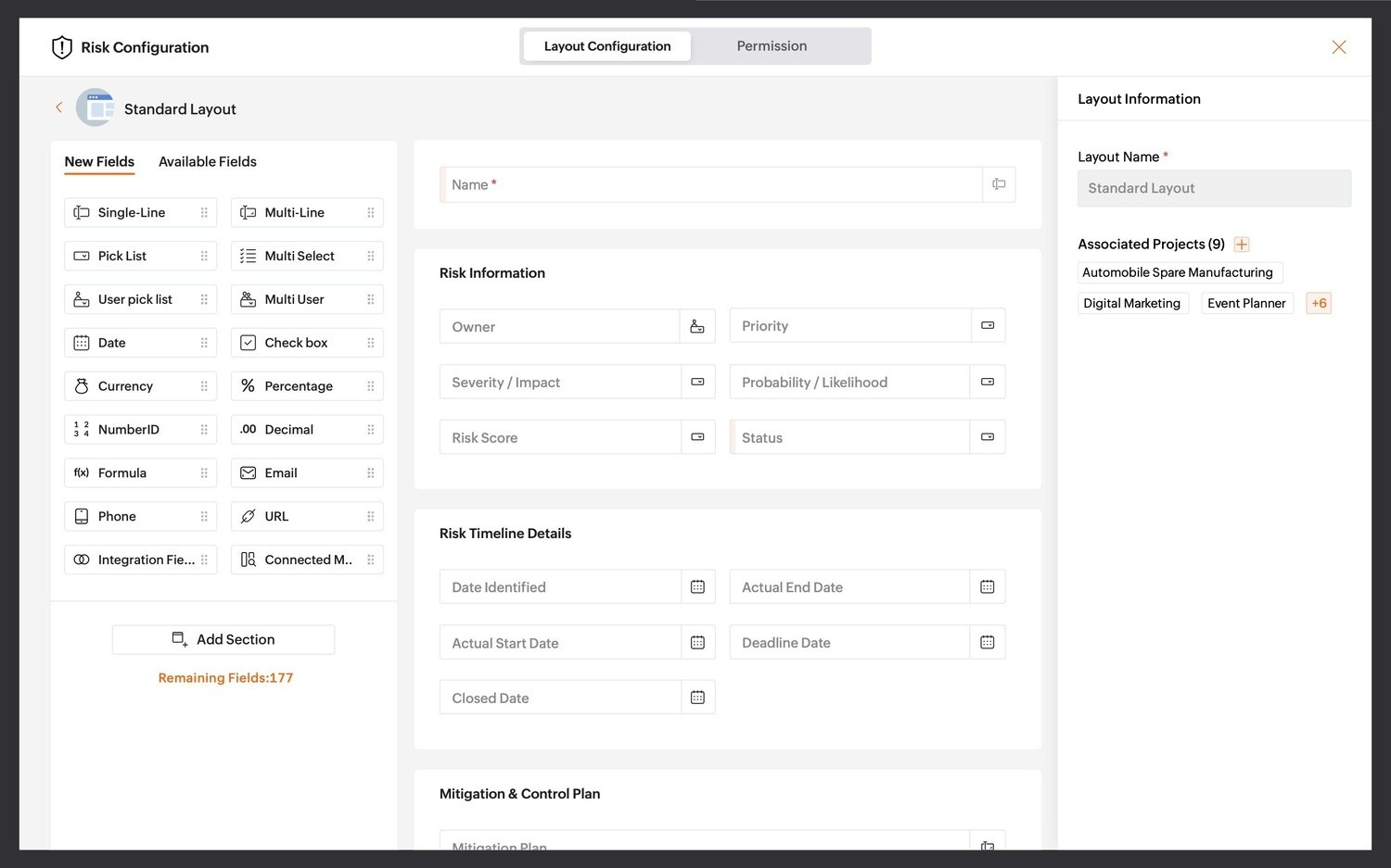 All you have to do is create a module, give it a name, configure it as global or project-specific, drag and drop fields like risk category, severity, and score, and watch it instantly replace your spreadsheets.