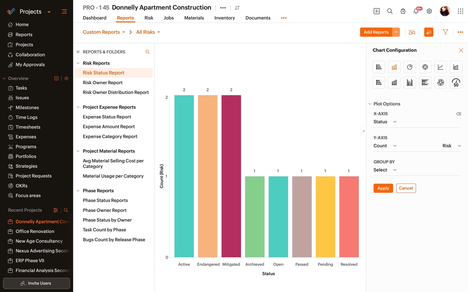 If you need an ad-hoc task completion report by assignee, filtered by priority, and grouped by milestone, build it. Go on to tailor any kind of report configured with the fields, filters, groupings, and visual formats that you define. What's more, you can even fine-tune and save criteria—so if you're a manager reviewing high-risk items first thing in the morning, they're ready to go.