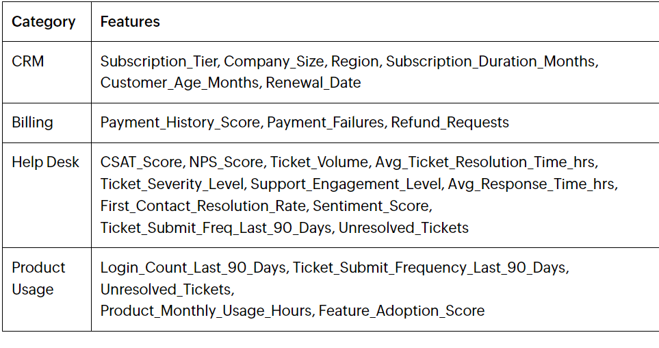 Para esta solução, utilizamos um conjunto de dados de churn de clientes de amostra representando um ambiente SaaS. Ele contém informações sobre o status de churn de cada cliente, juntamente com vários atributos relacionados ao cliente.