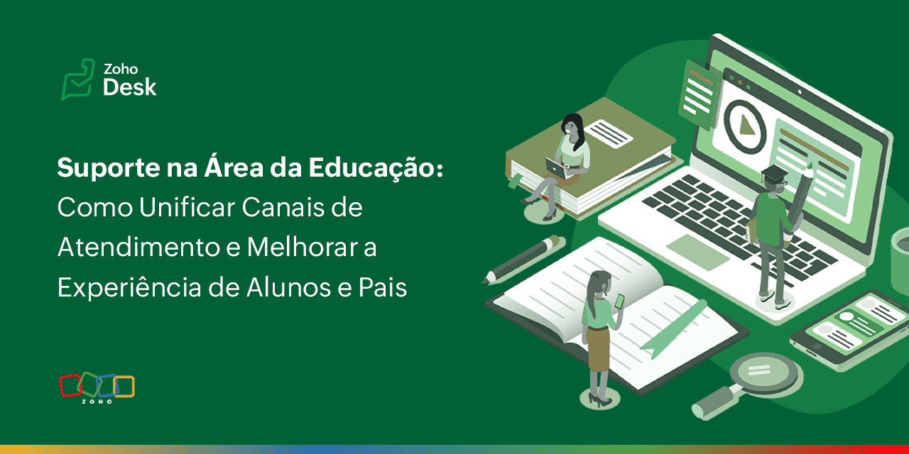 Então, não perca mais tempo! Ofereça uma experiência de suporte mais inteligente e centralizada na sua instituição com o Zoho Desk.