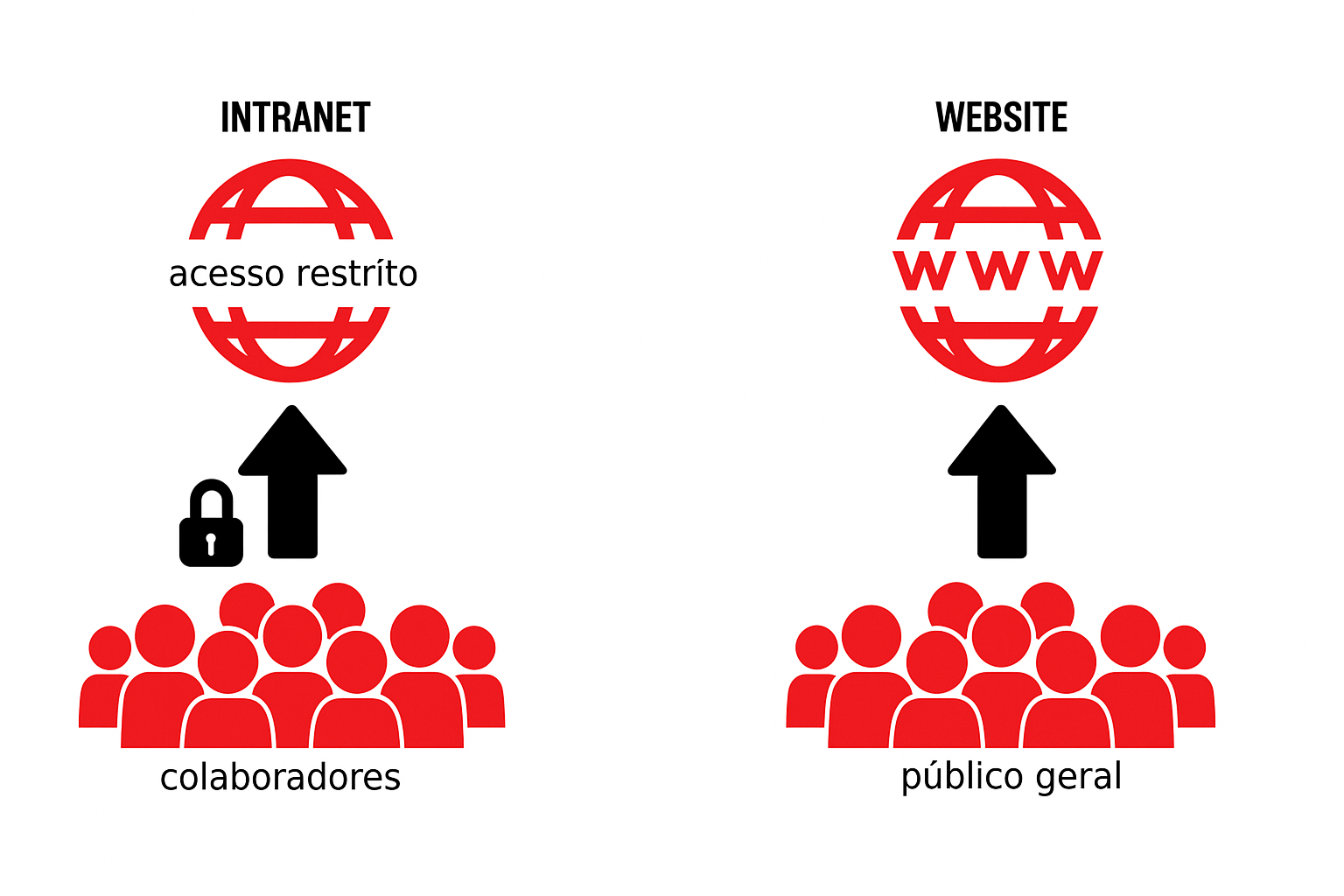 O sistema intranet é uma rede privada interna que permite a comunicação e colaboração entre usuários. A rede corporativa pode apenas ser acessada pelos funcionários da empresa, sendo um canal para: